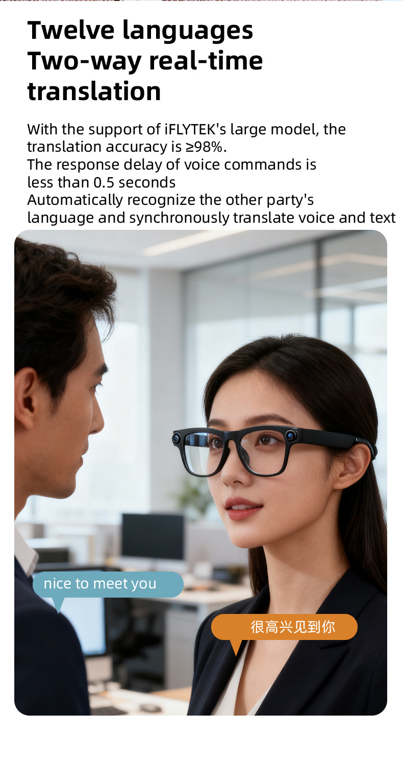 外贸FG02新款高清像素智能A1对话眼镜摄像拍照翻译通话防水墨镜 English | 投诉