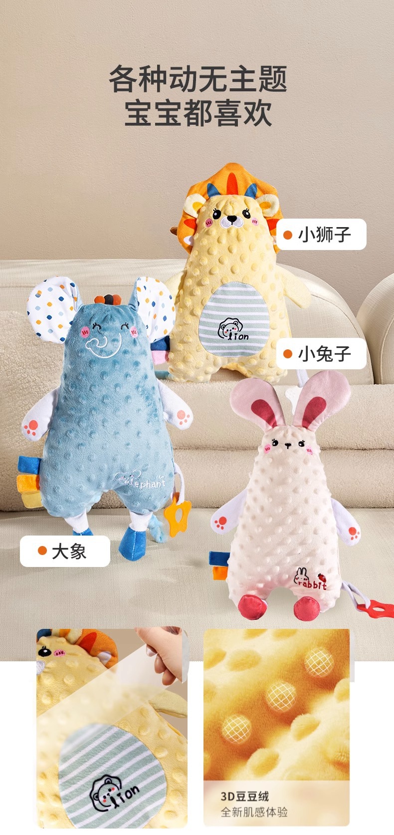 恐龙、狮子、兔子安抚巾的标准充绒量≥70g