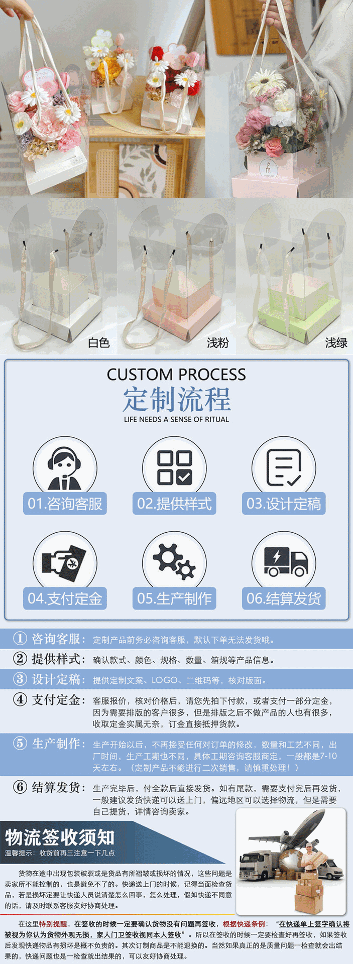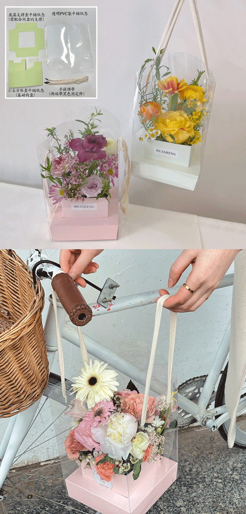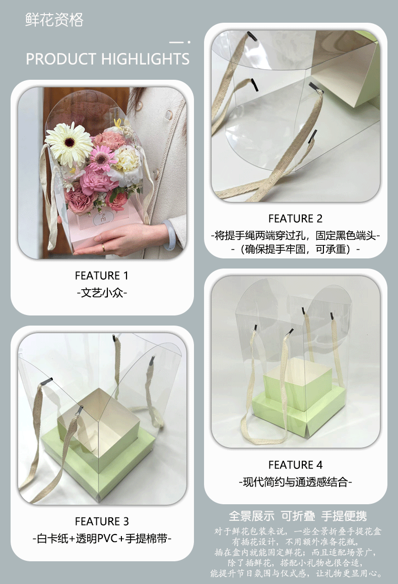 手提透明折叠鲜花盒文简约纯色插花盒七夕情人节花艺花店鲜花礼盒 English | 投诉