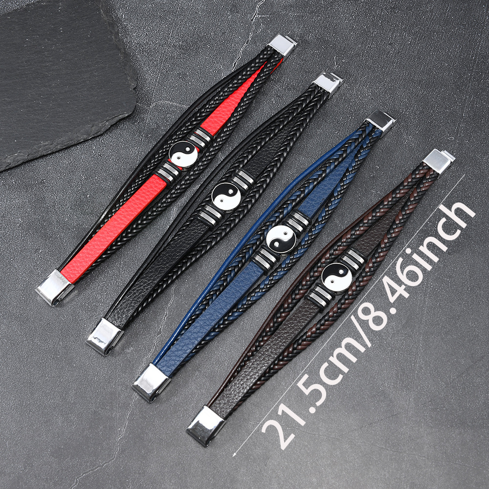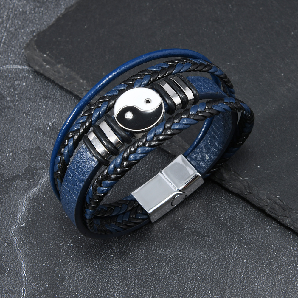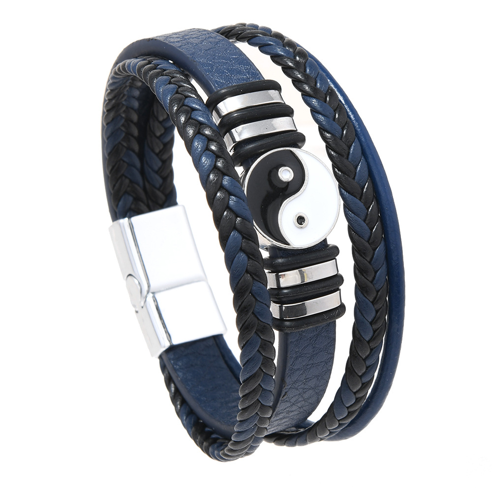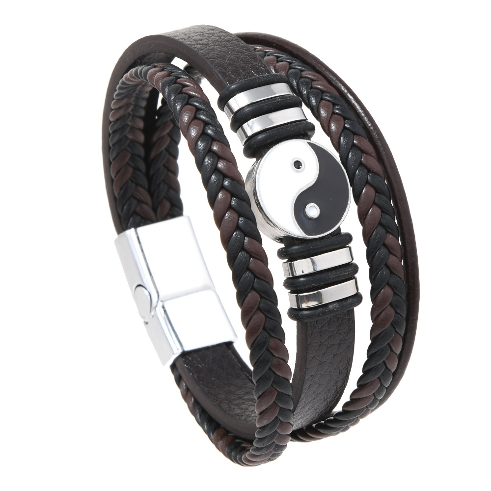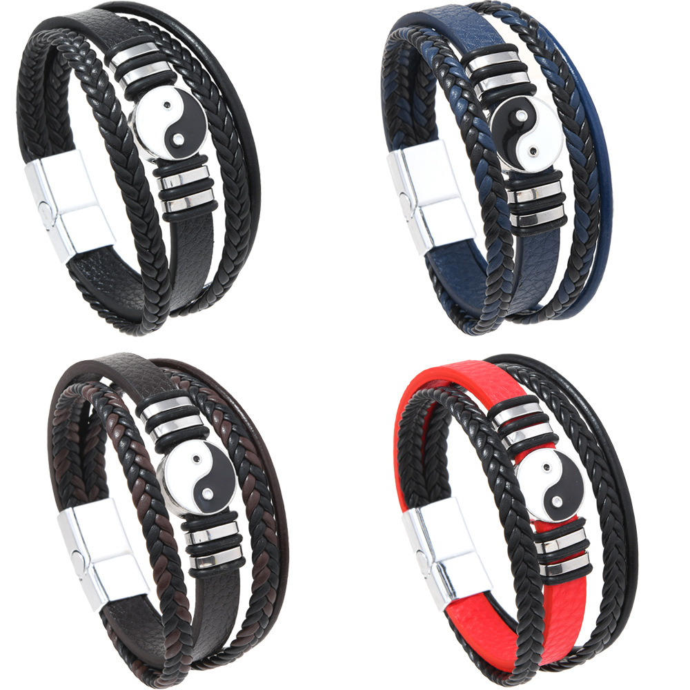 欧美跨境货源时尚朋克风多层男士太极八卦手环磁扣皮手链饰品批发 English | 投诉