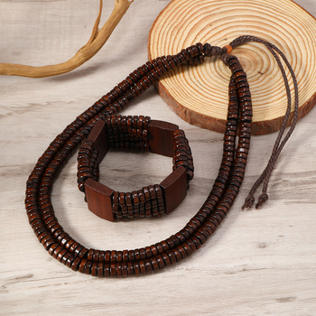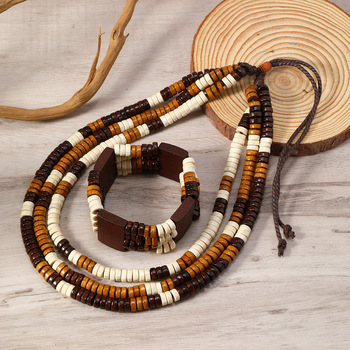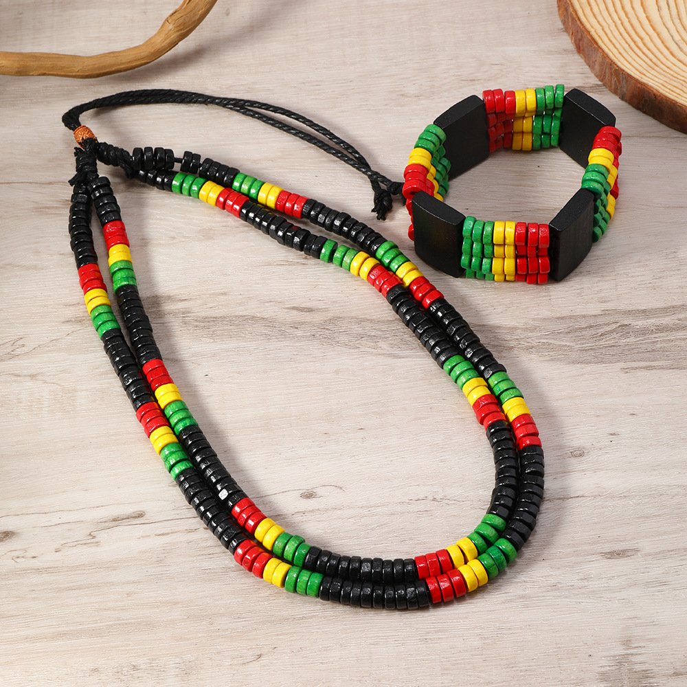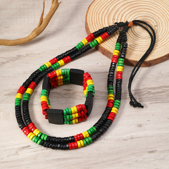 波西米亚红黄绿扁珠木珠项链手链组合二件套装 男士首饰串珠饰品 English | 投诉