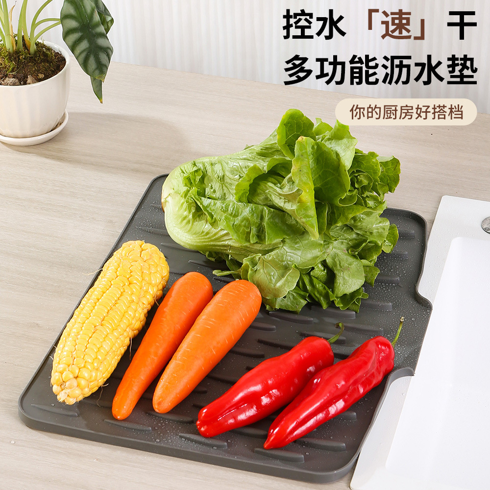 硅胶沥水垫水槽导流式厨房果蔬碗碟滤水干燥垫家用台面锅垫隔热垫 English | 投诉