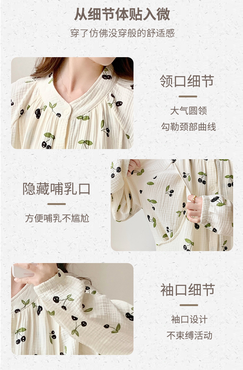 全纯棉月子服纱布双层待产裙加裤子产后孕妇睡衣哺乳睡裙夏天外穿 English | 投诉