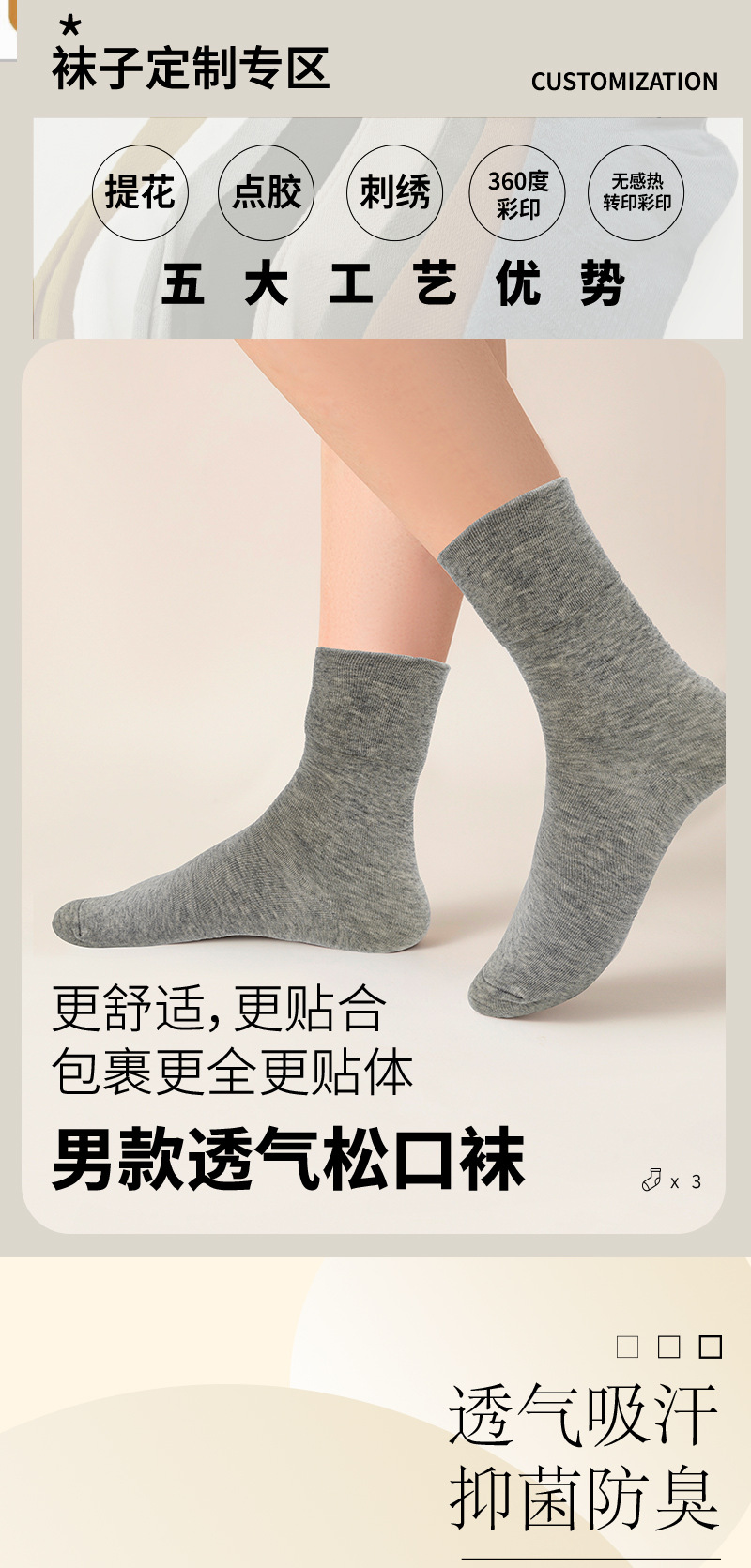 秋季男士松口运动袜黑白灰透气吸汗防臭男士全棉宽口袜子高弹不勒 English | 投诉