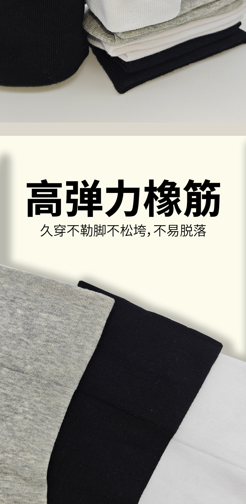 面料名称: 精梳棉 筒高: 短筒 主面料成分: 棉 功能: 吸汗 品牌: 晨泰坊 产品类别: 普通休闲袜 成分及含量: 棉 包装形式: 袋装 无骨缝制: 是:手工无骨缝头 图案: 纯色 适用性别: 中性/男女均可 针数: 200N 上市时间: 2024年春季 适合季节: 夏季,春季,四季通用 产地: 广东 是否跨境出口专供货源: 否 货号: 男士松口袜 颜色: 黑色,灰色 尺码: 均码 是否进口: 否 重量: 0.5 kg/双