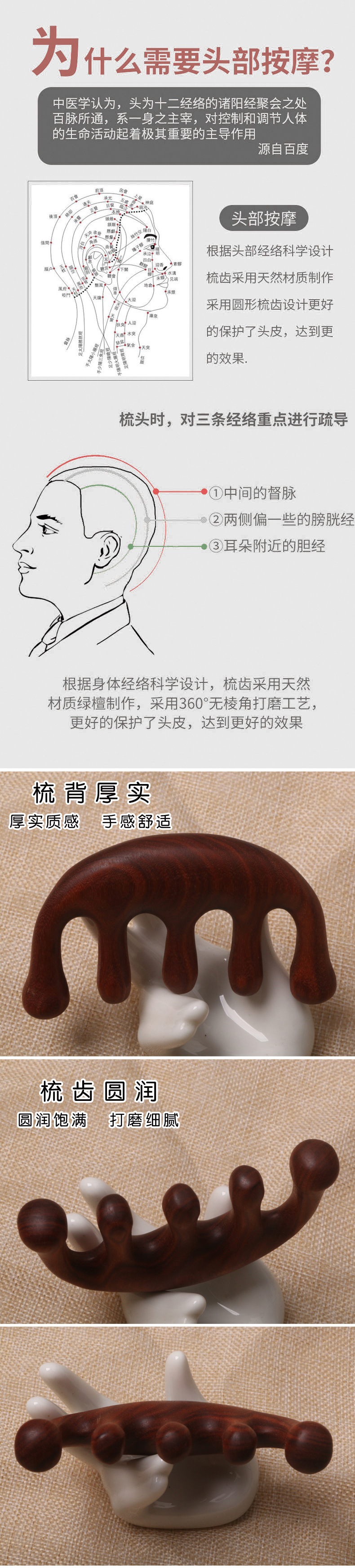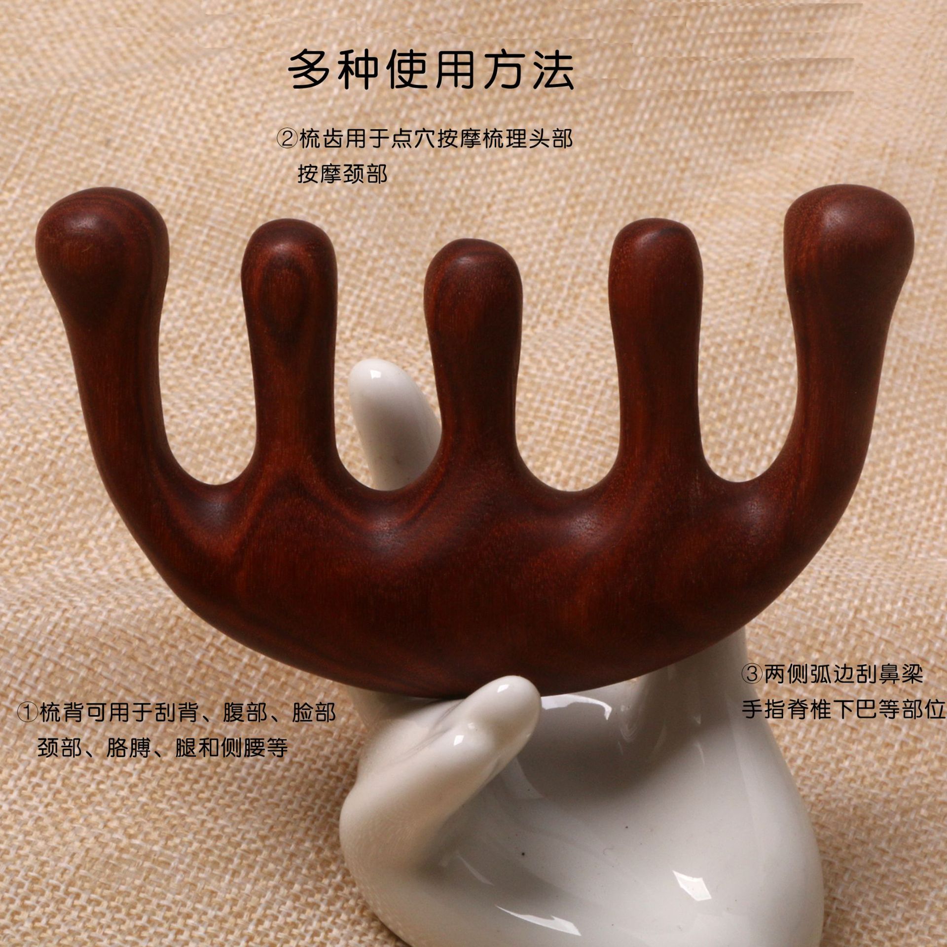 金丝檀木按摩梳经络梳实木红檀木头部颈部刮痧按摩加厚五齿球厂家 投诉