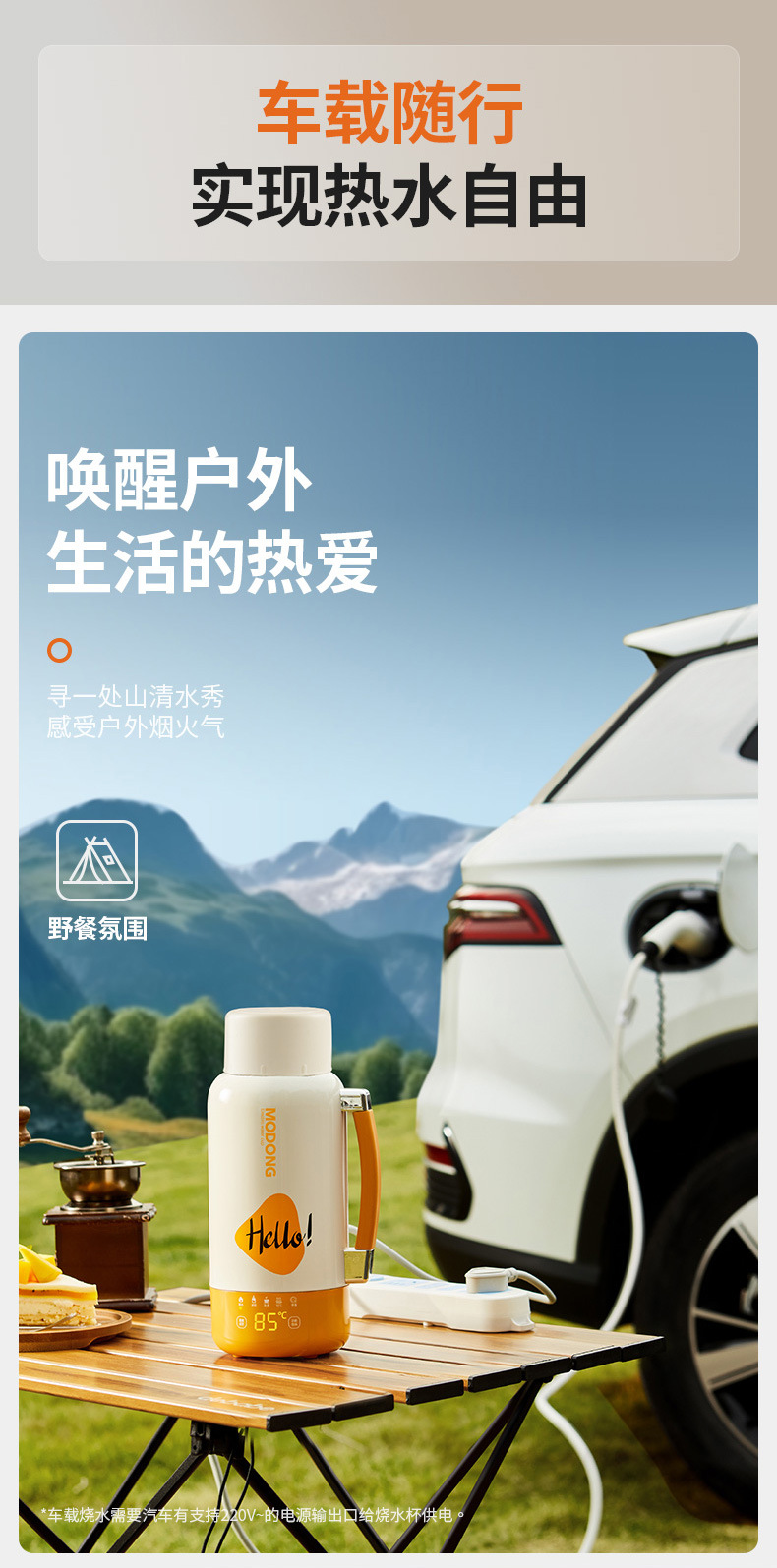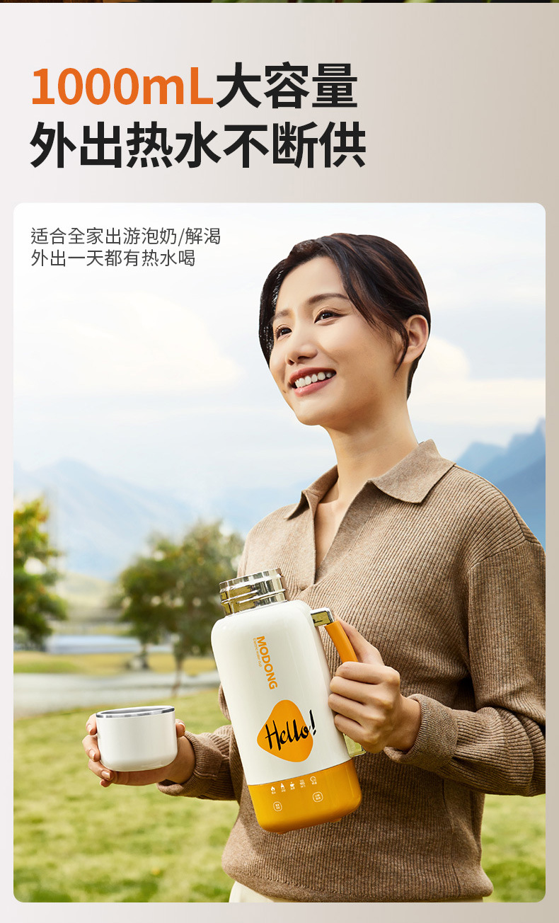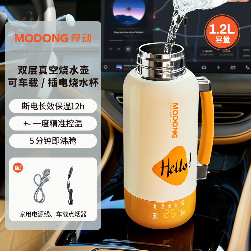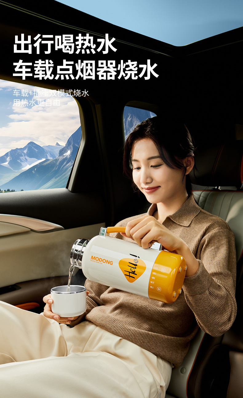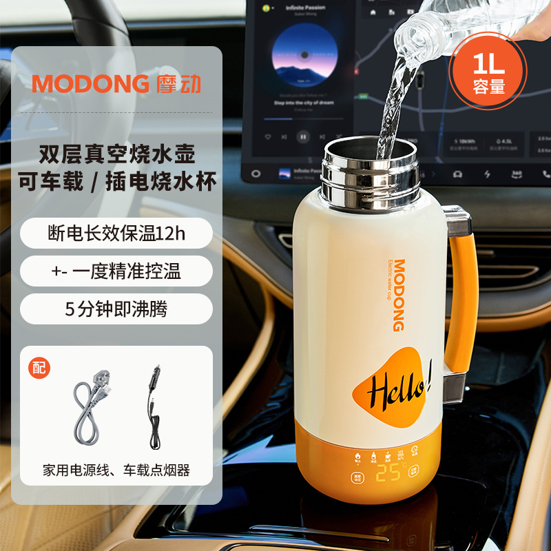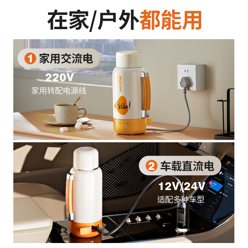 摩动2025新款插电车载两用烧水杯大容量保温杯户外出差旅行烧水壶