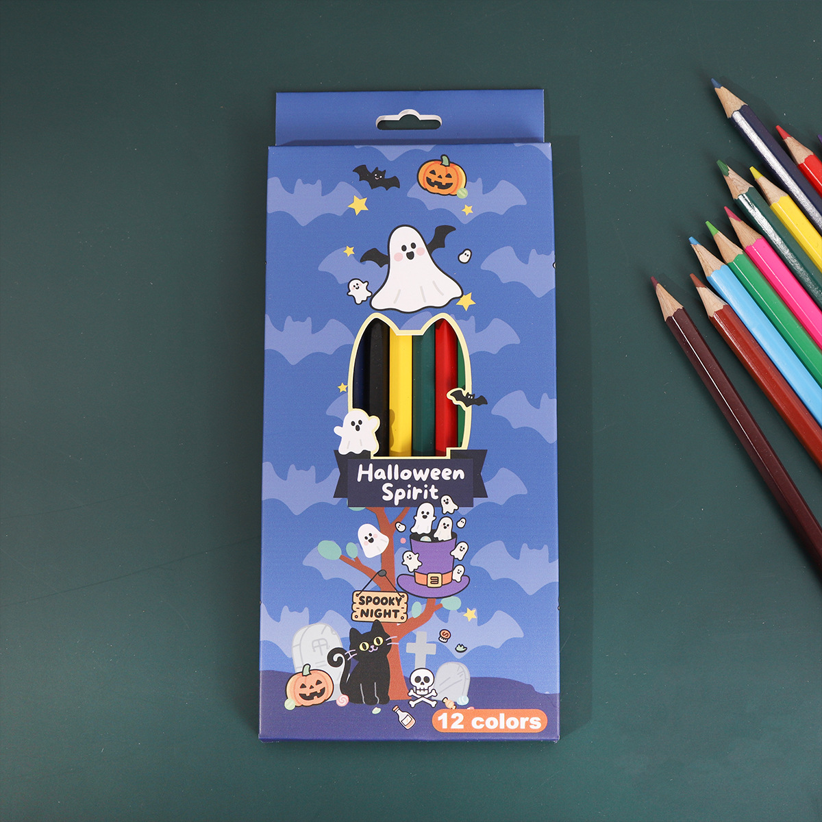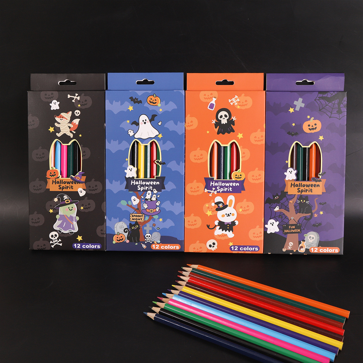 万圣节彩色铅笔油性彩铅手绘画笔美术用品儿童涂色12色彩铅礼盒装