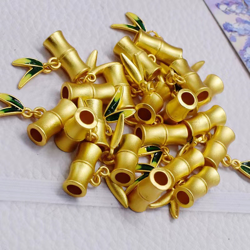 古法金保色滴油竹节小吊坠 沙金配饰diy项链手链节节高升串珠配件