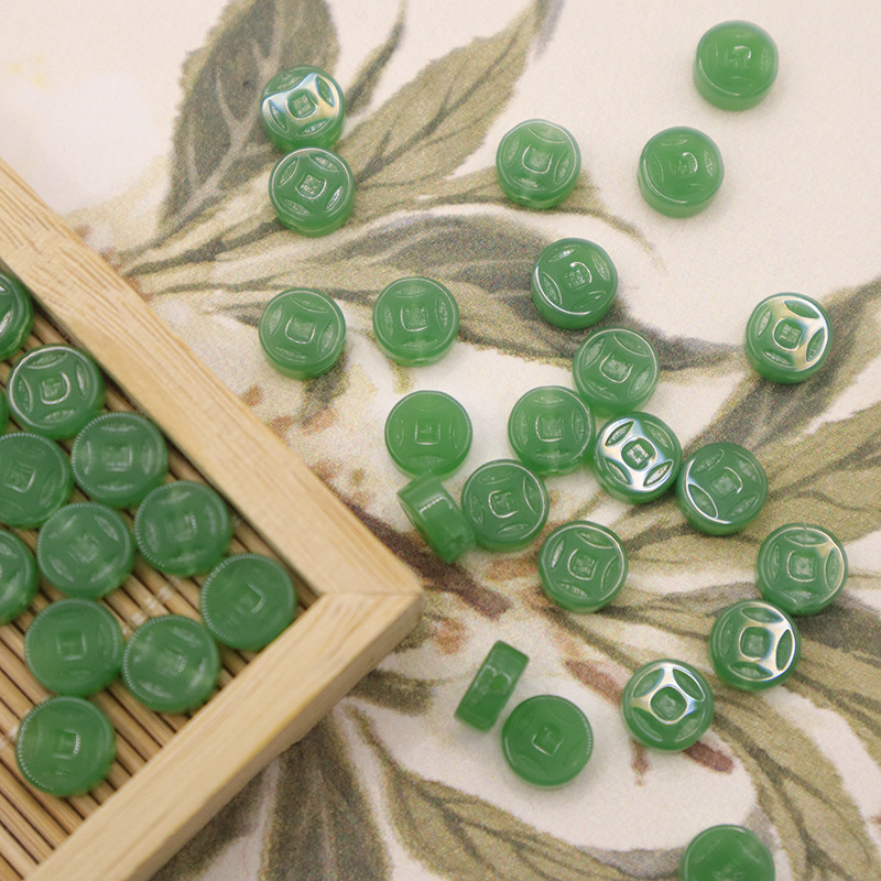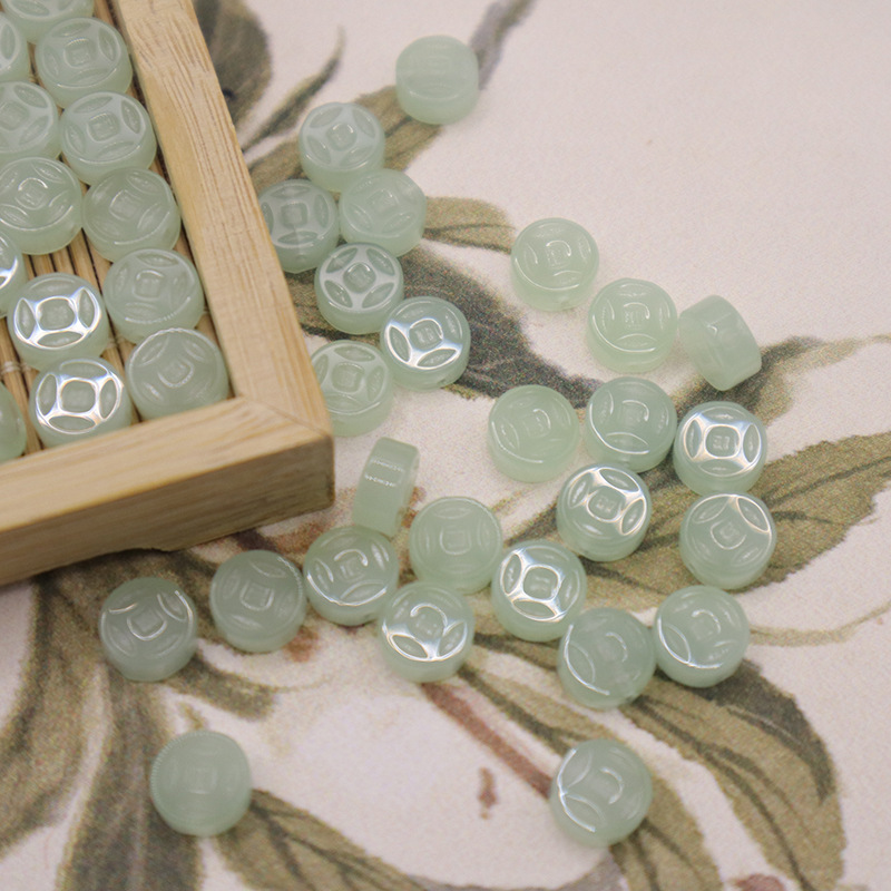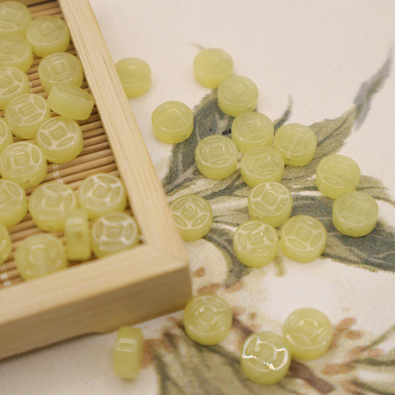 国风新中式8mm铜钱直孔琉璃材质不掉色diy手工编织手链项链吊坠耳 投诉