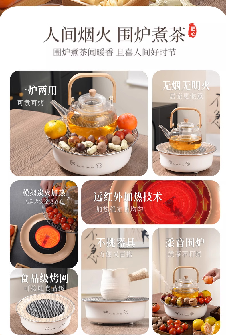 围炉煮茶电陶炉家用聚会茶炉煮茶器玻璃泡茶壶电茶炉多功能养生壶 English | 投诉