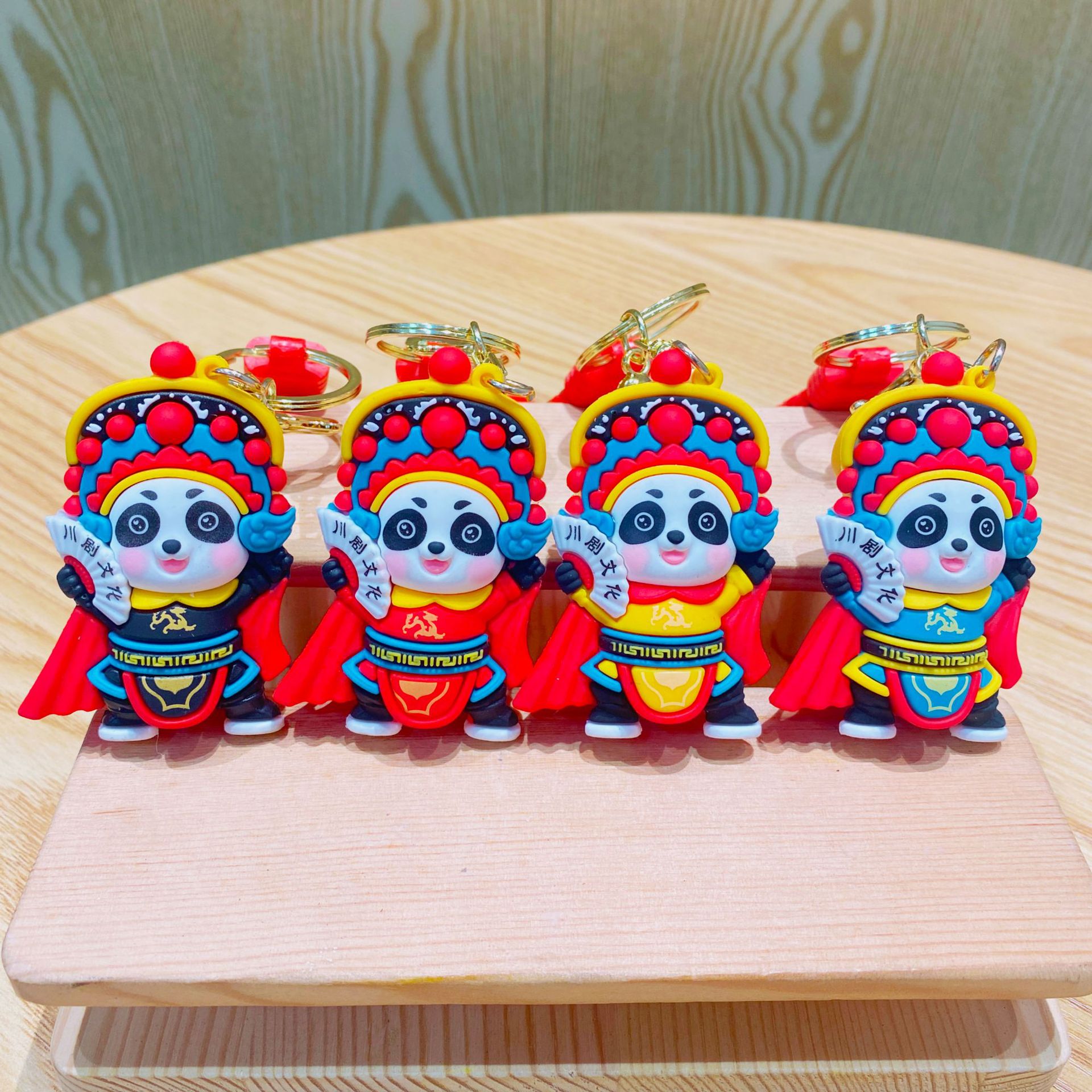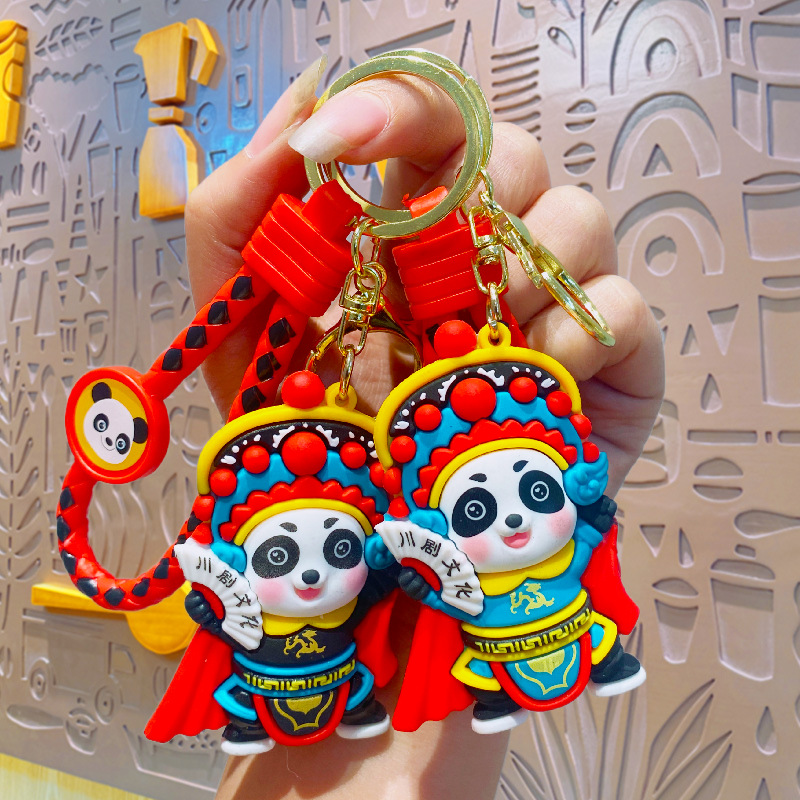 卡通国潮戏曲变脸熊猫汽车钥匙扣挂饰批货书包挂件公仔小礼品批发 English | 投诉