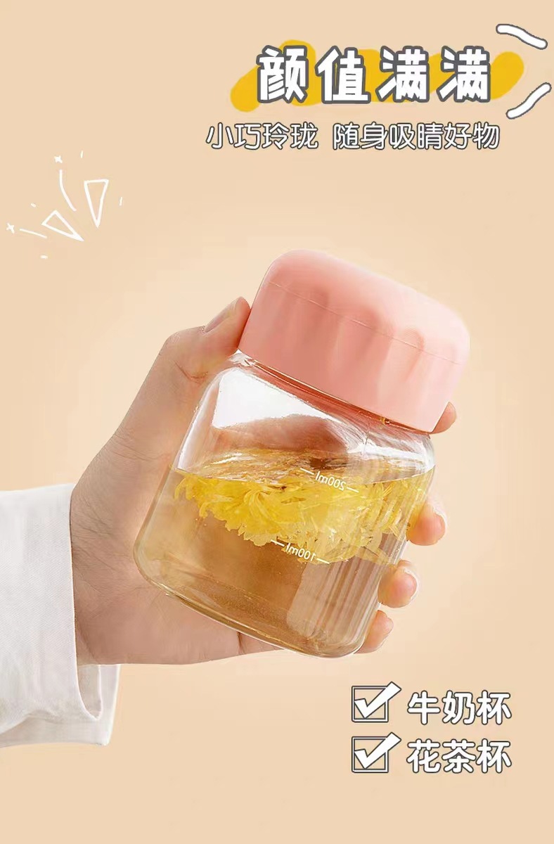 ins风胖胖玻璃杯办公室家用水杯带盖便携豆浆牛奶咖啡杯礼品杯子 English | 投诉