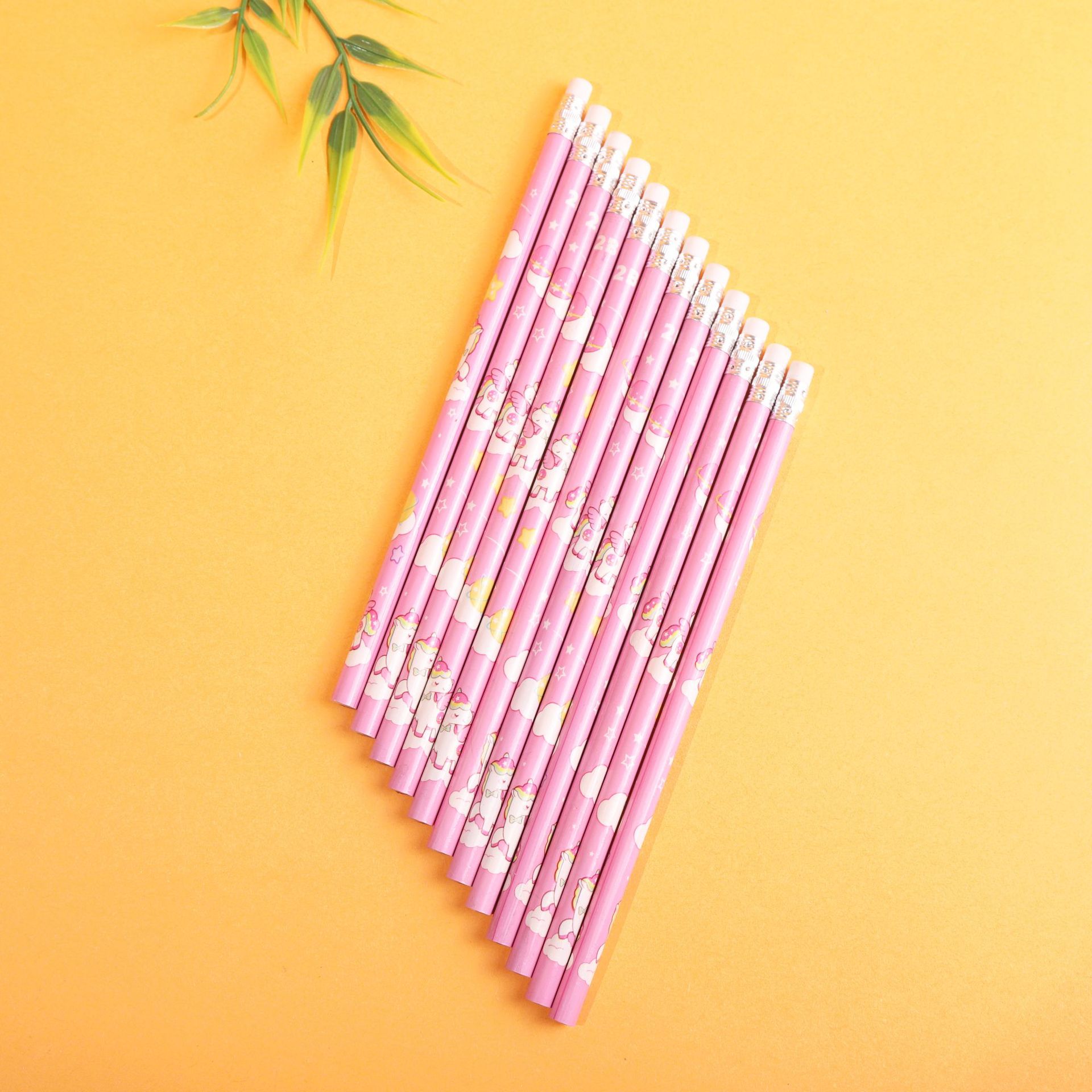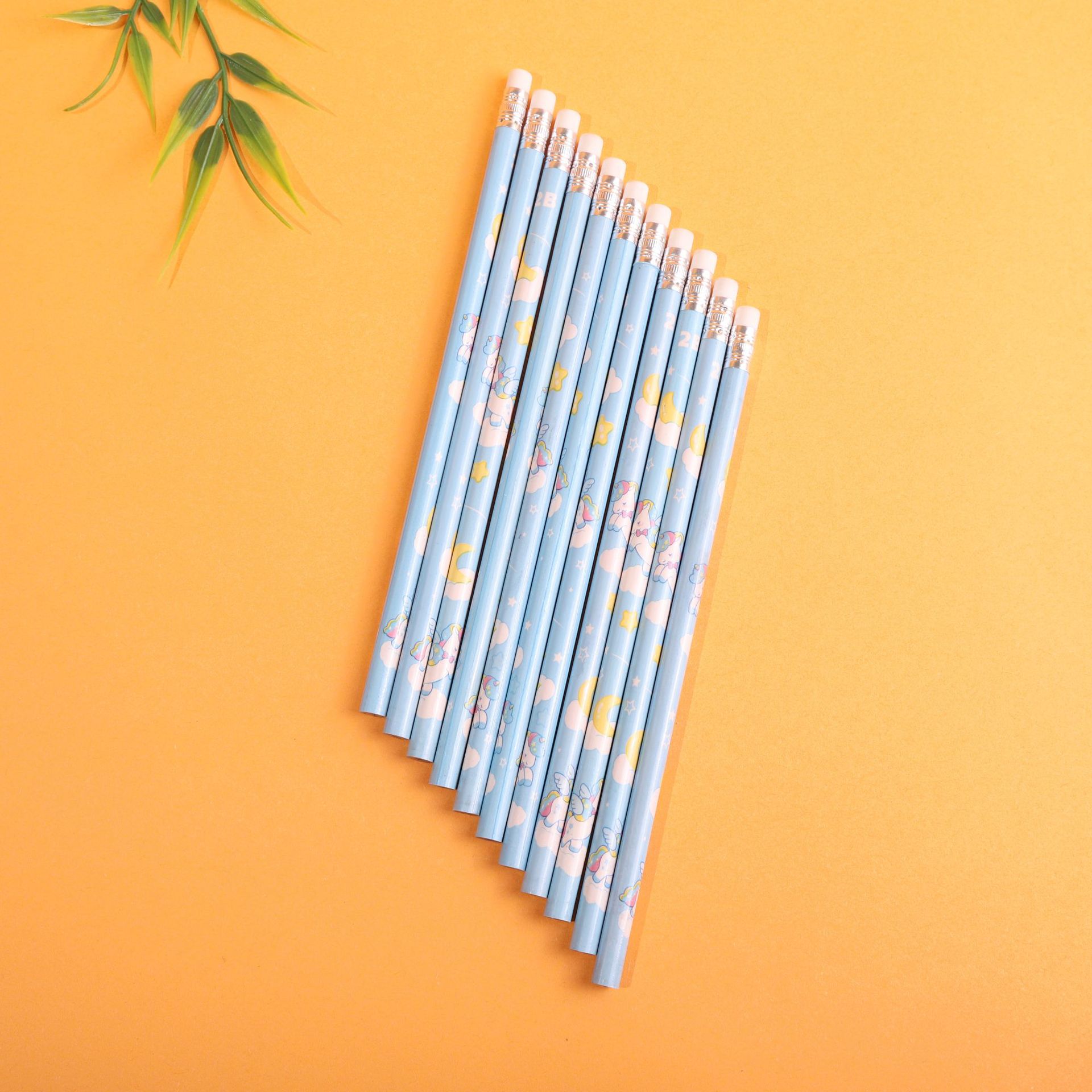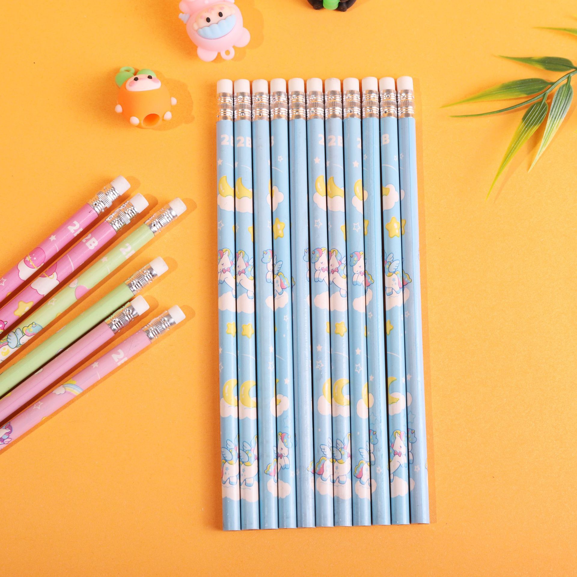 卡通独角兽小学生2b铅笔一套12支一袋带皮头卷笔刀学生文具铅笔