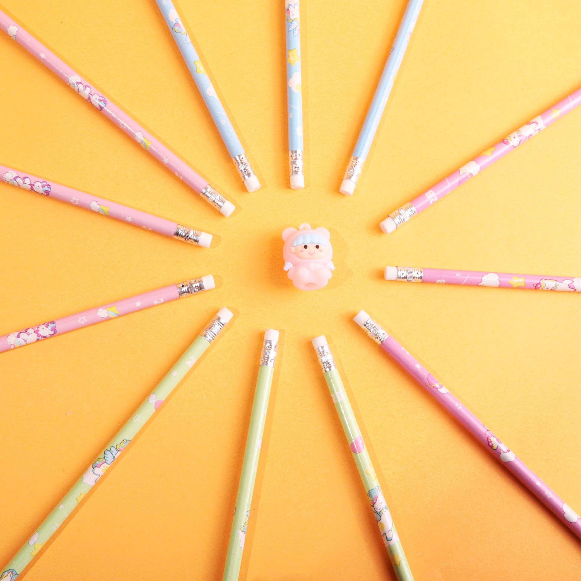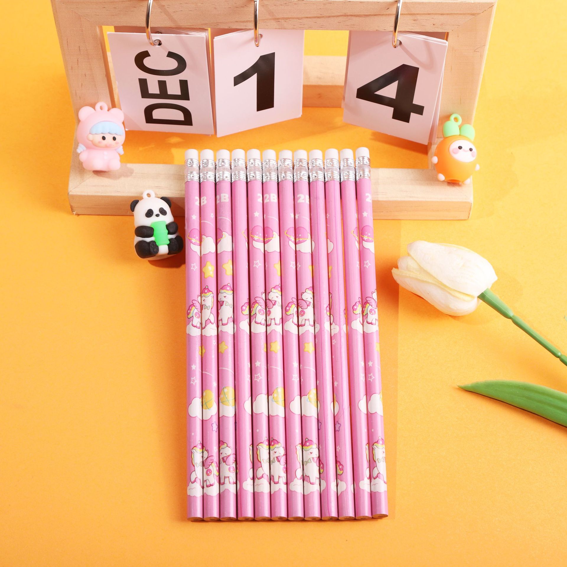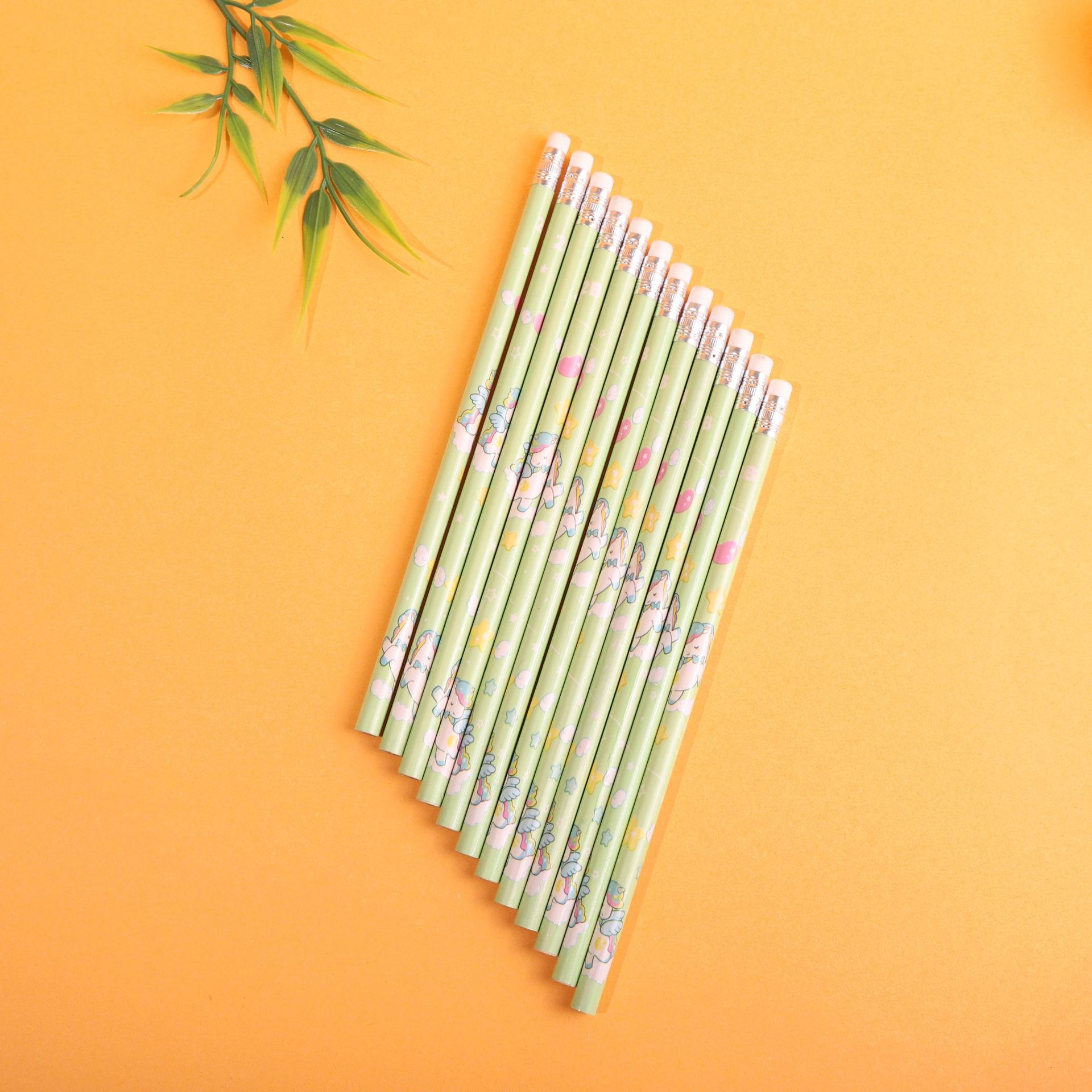 卡通独角兽小学生2b铅笔一套12支一袋带皮头卷笔刀学生文具铅笔