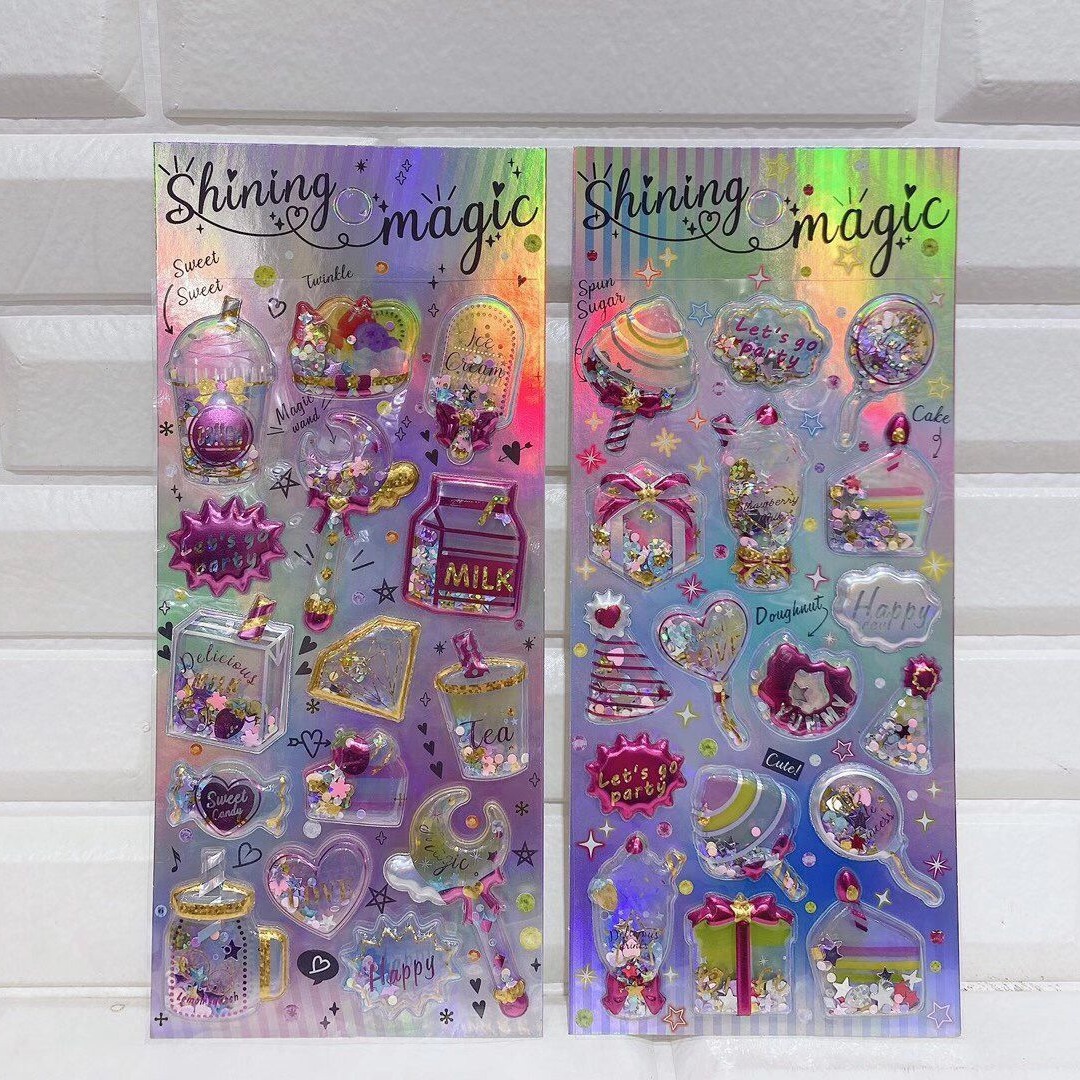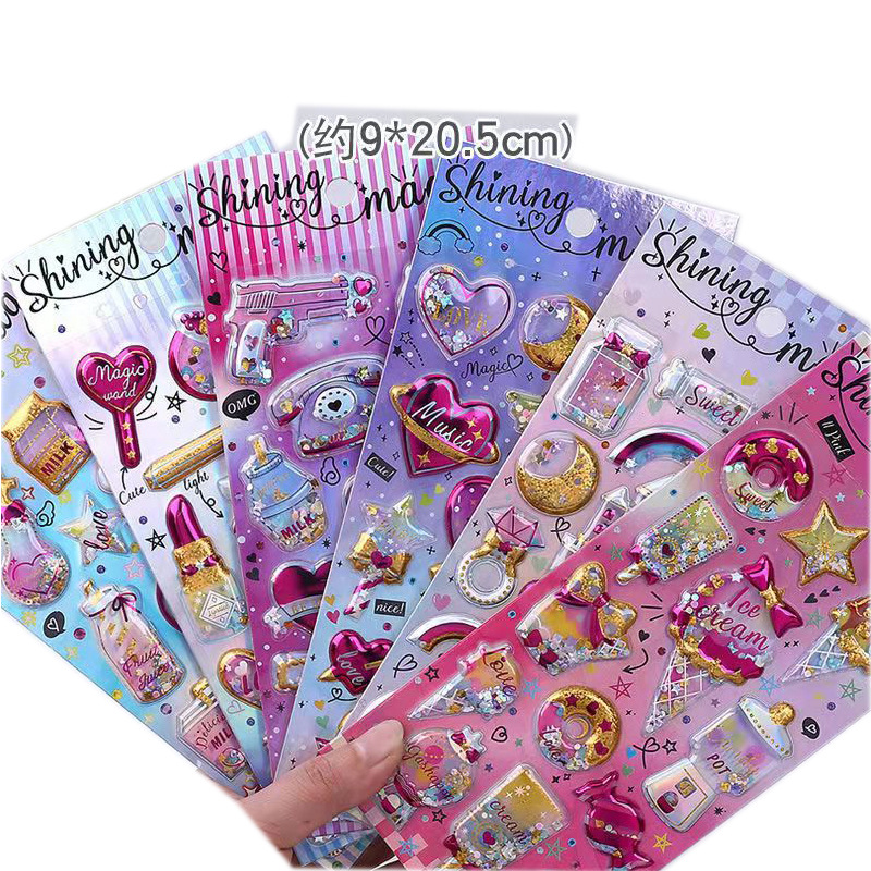 【商品款式】:共10多款贴纸,里面没有水,只有亮金片