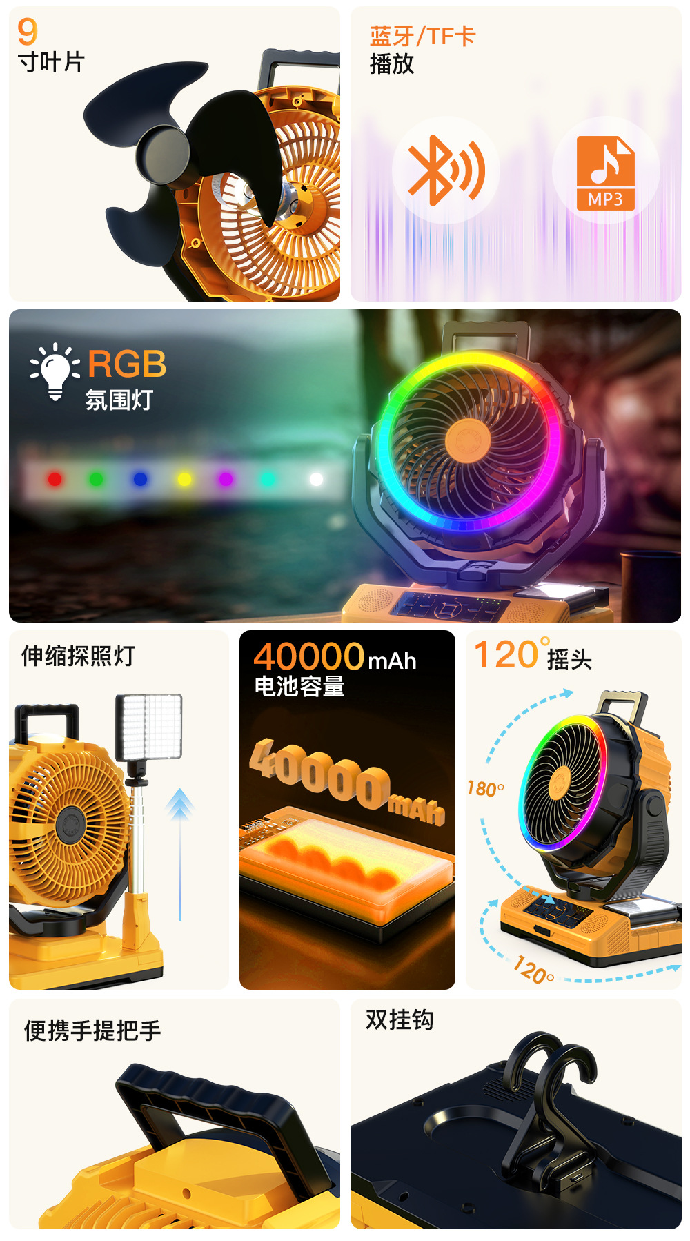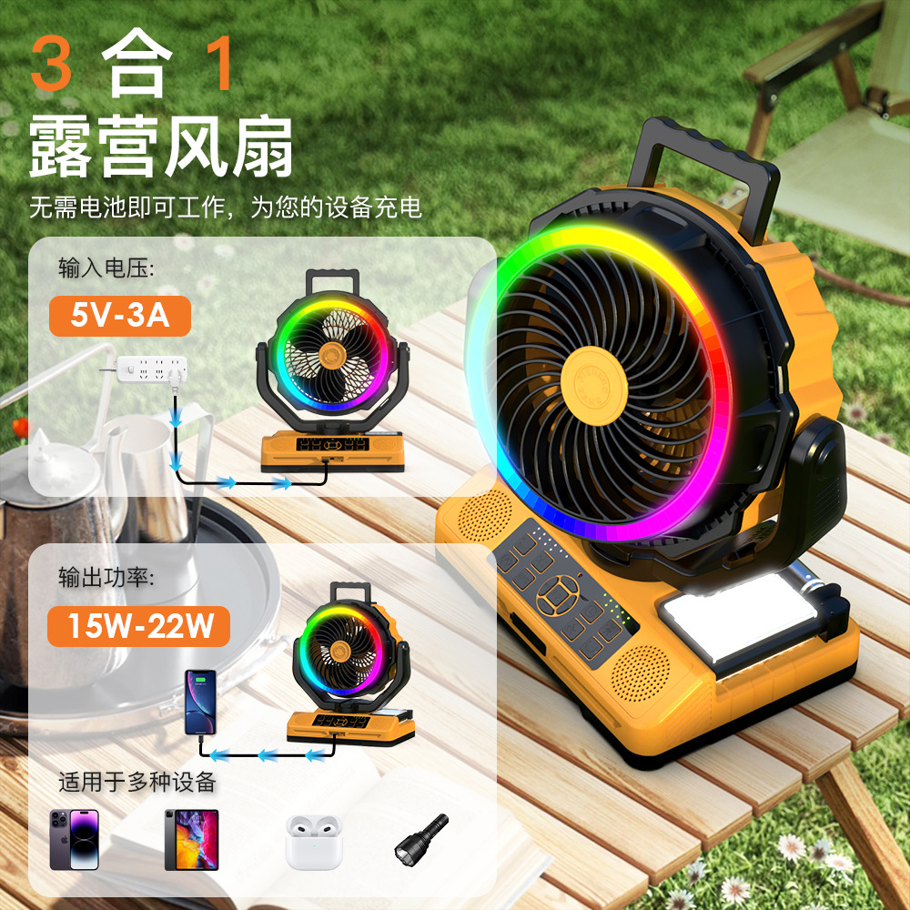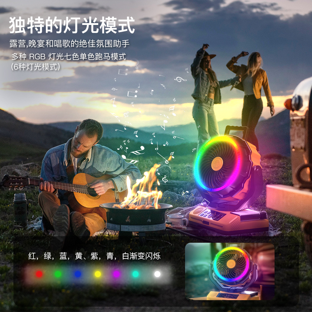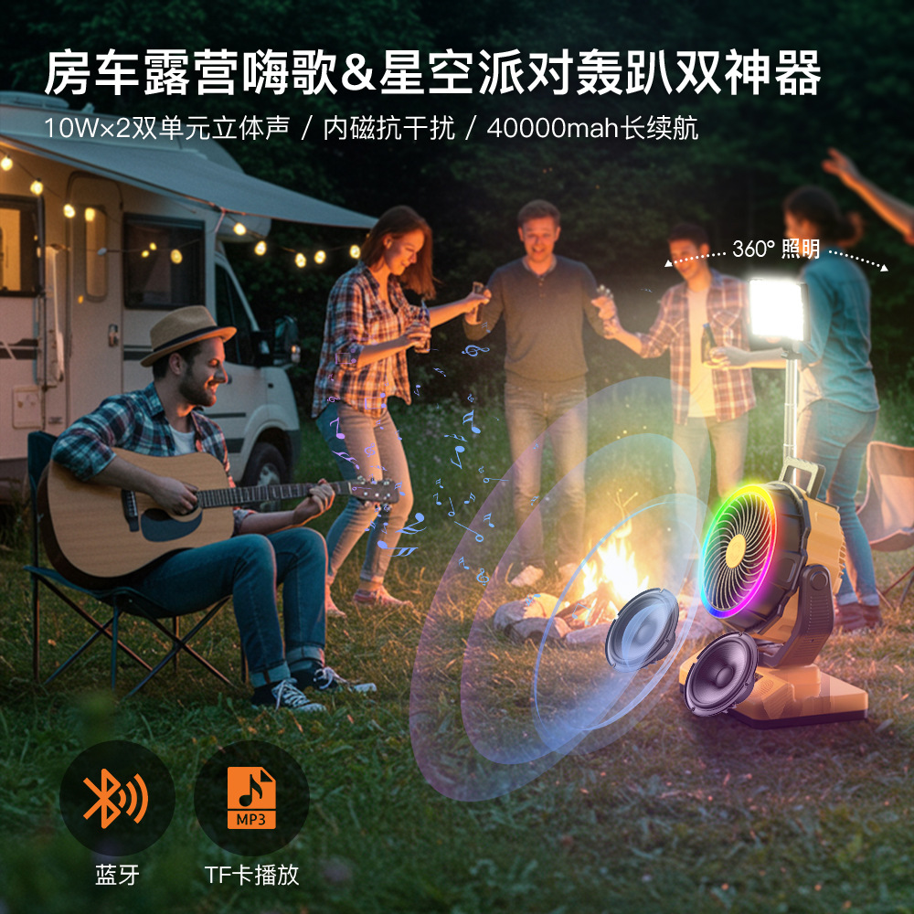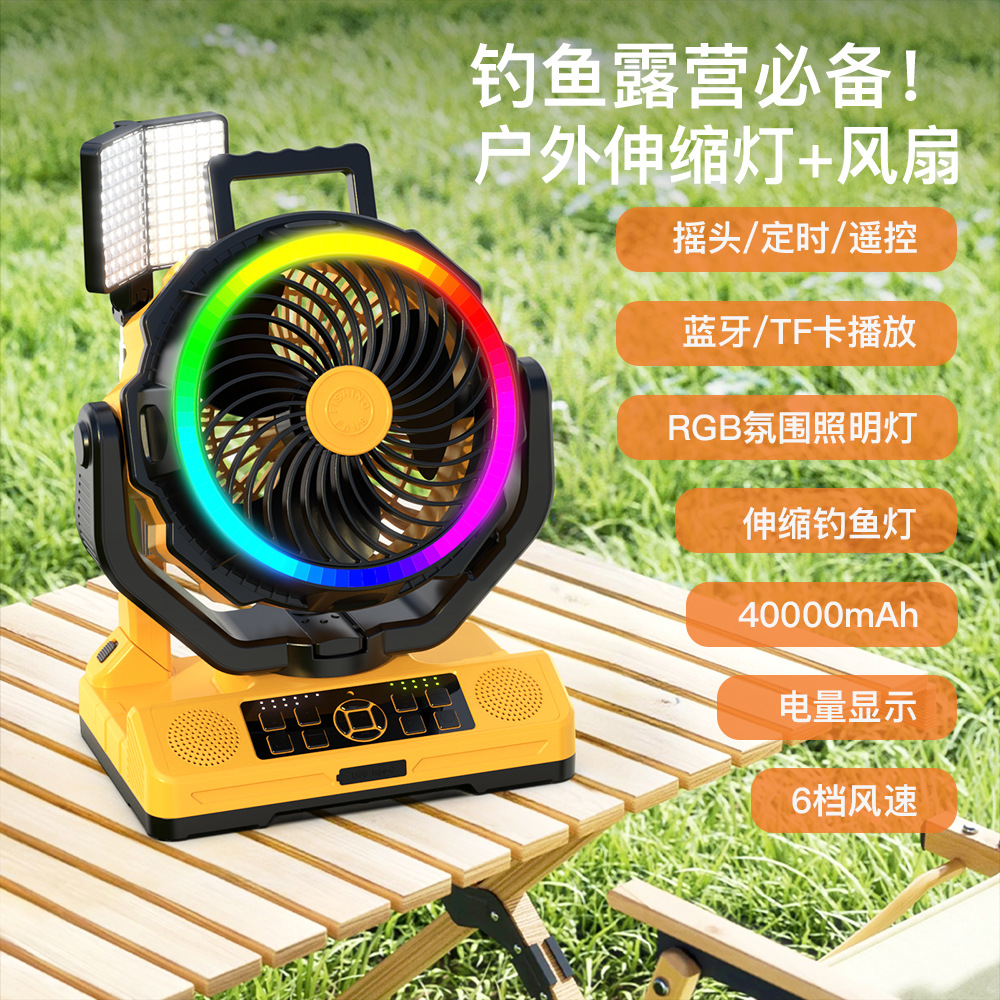 大容量蓝牙音响伸缩露营灯RGB钓鱼电扇