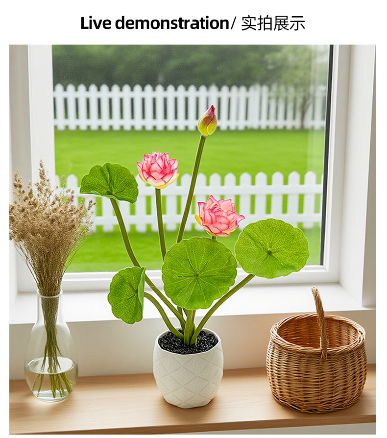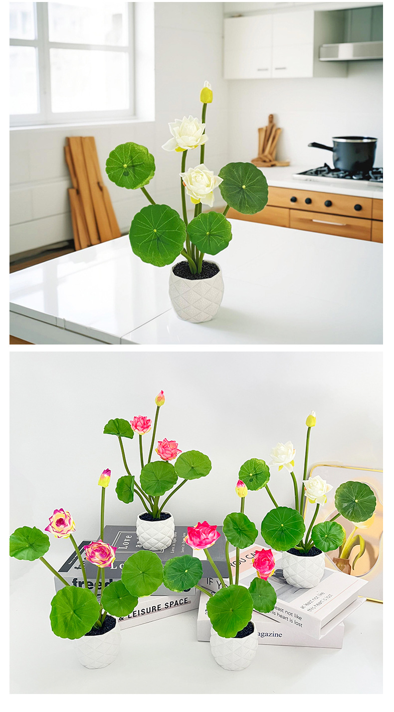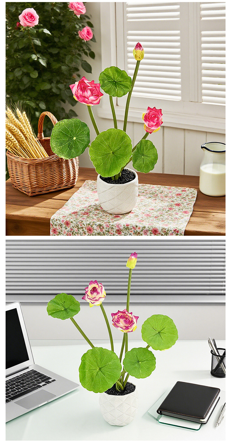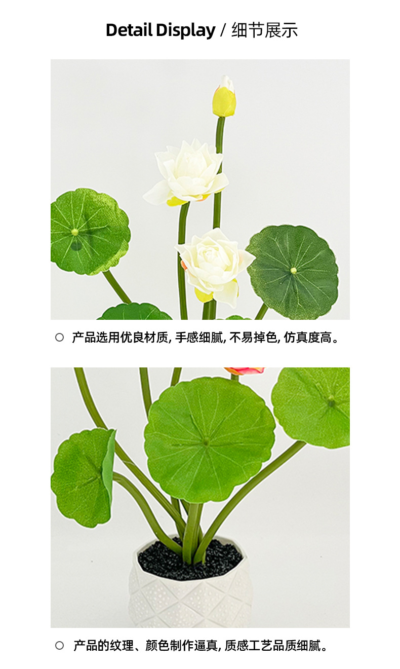 仿真荷花盆栽装饰绿植盆景摆件家居陈列摆放拍摄道具仿真花盆栽 English | 投诉