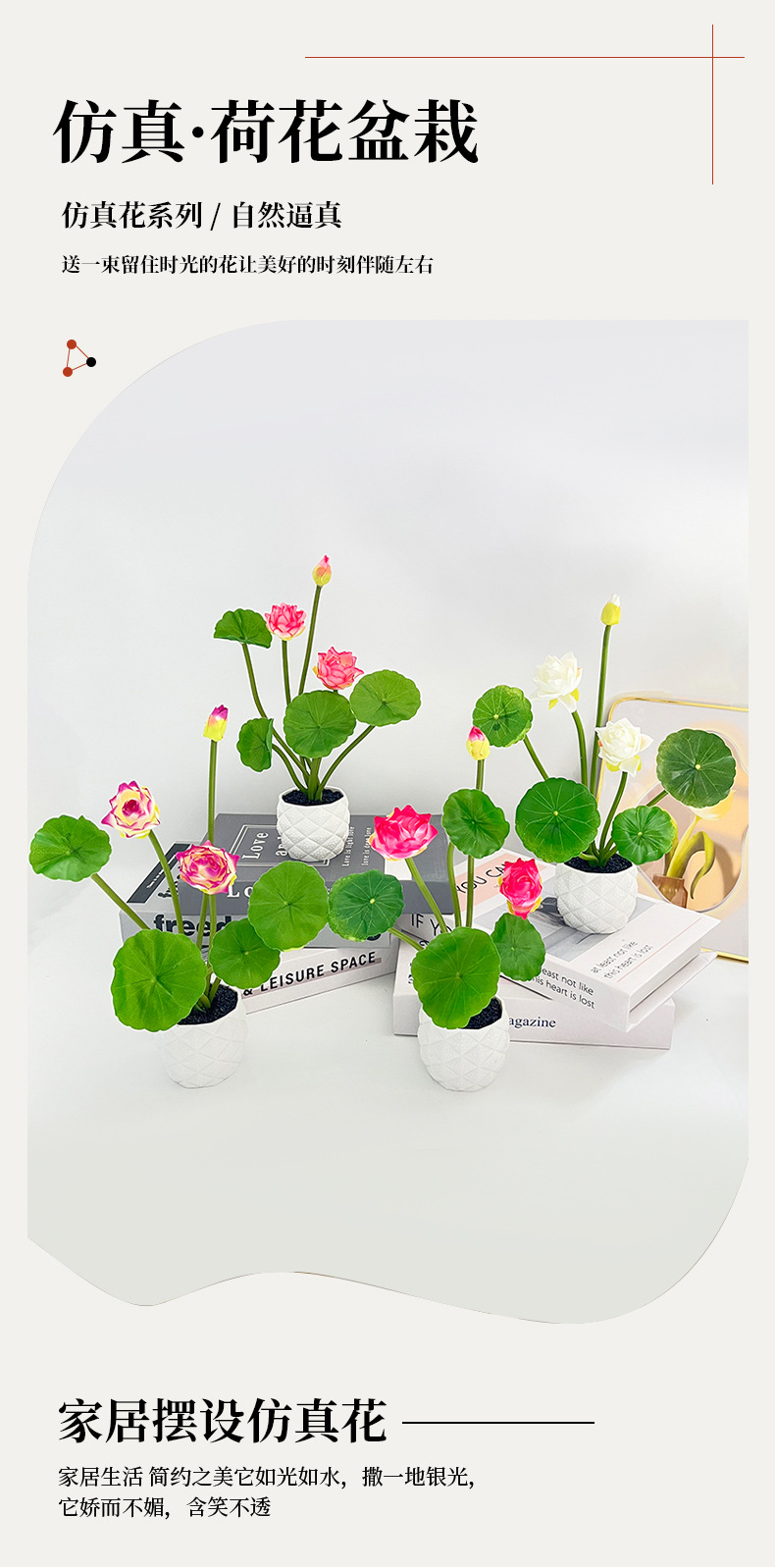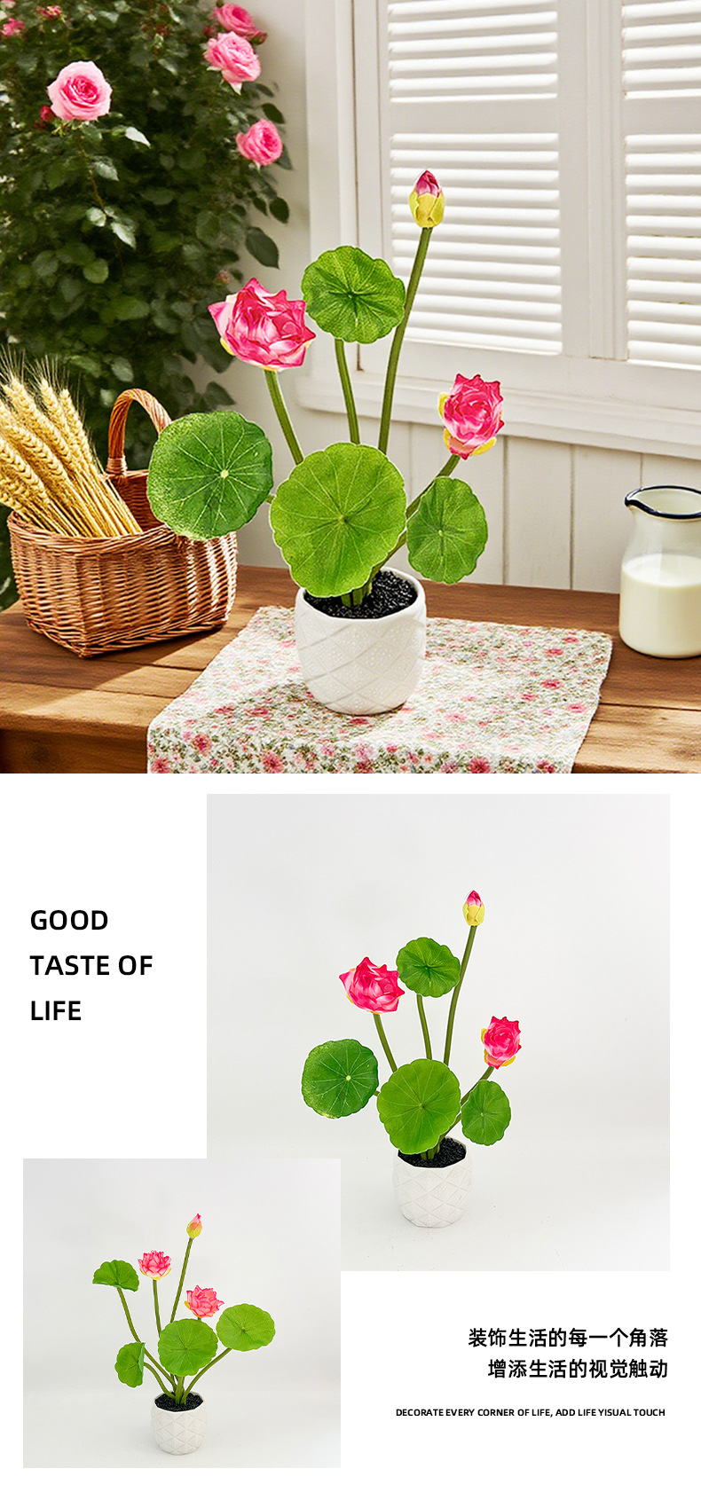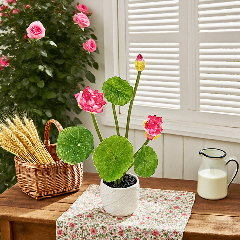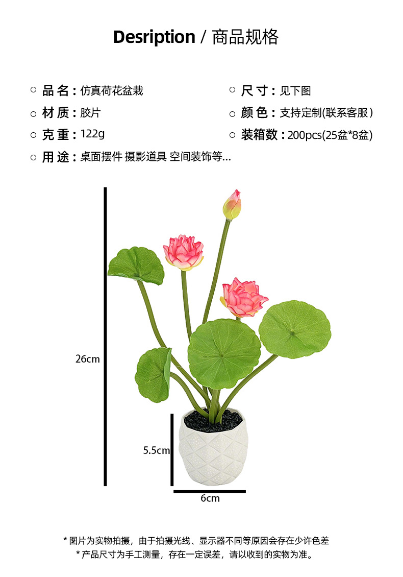 仿真荷花盆栽装饰绿植盆景摆件家居陈列摆放拍摄道具仿真花盆栽 English | 投诉