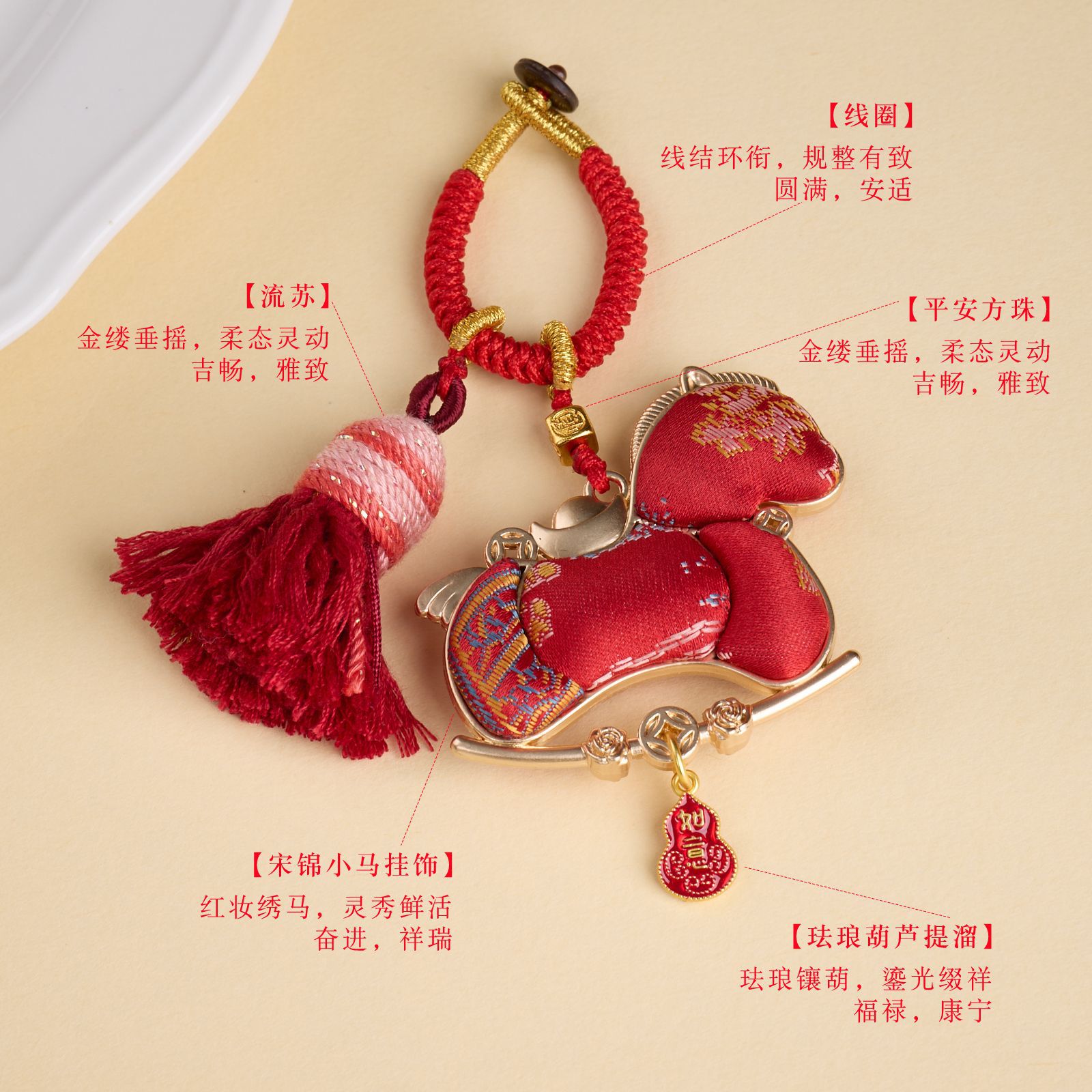 |名称|宋锦小马挂件【五福临门】