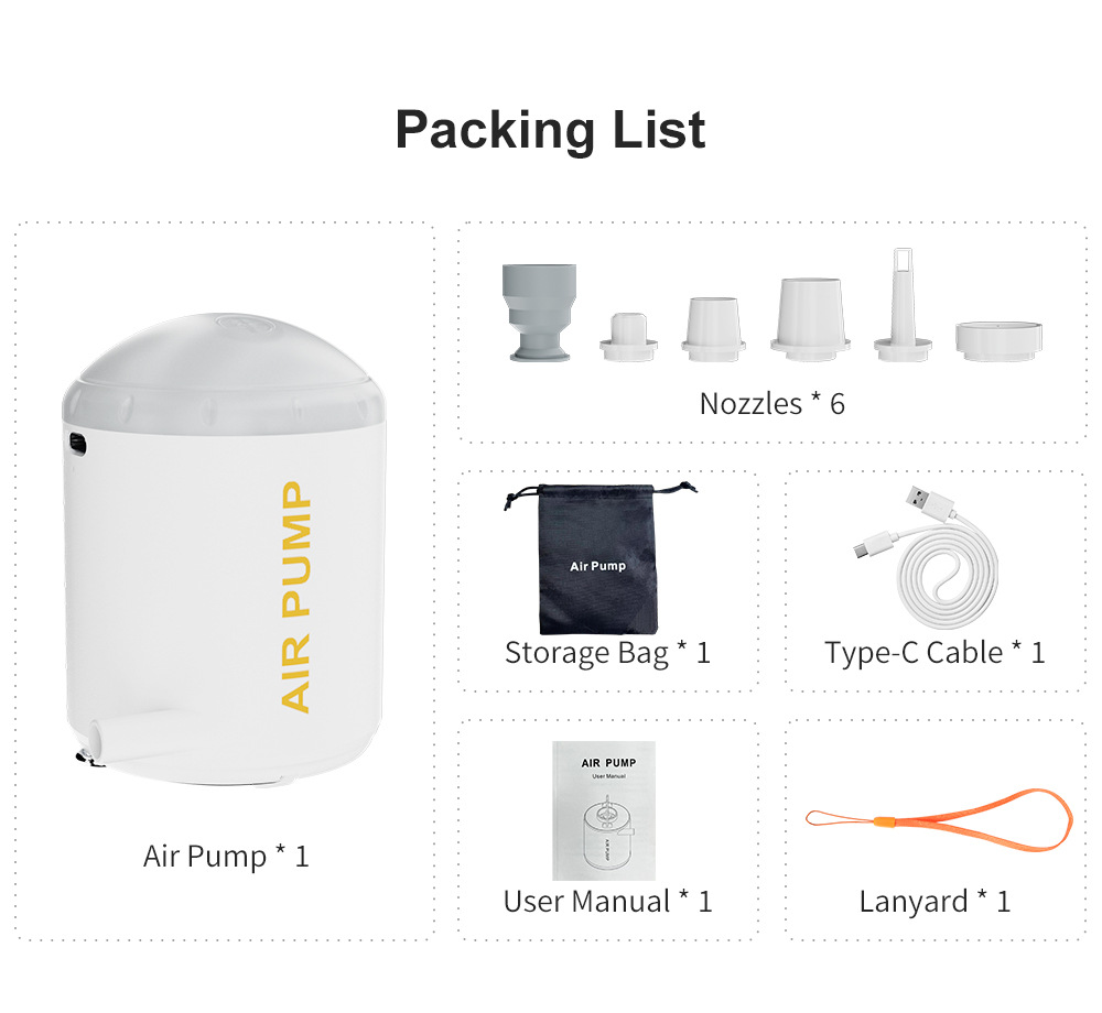 包装清单 充气泵/Type-c数据线/收纳袋/