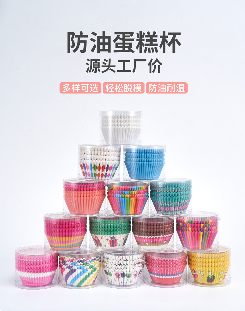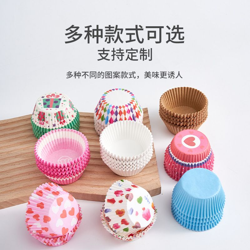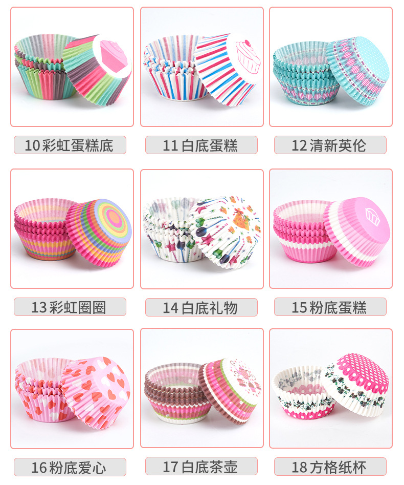 工厂批发纸杯蛋糕托 彩色图案马芬蛋糕底托纸垫100只装烘焙纸