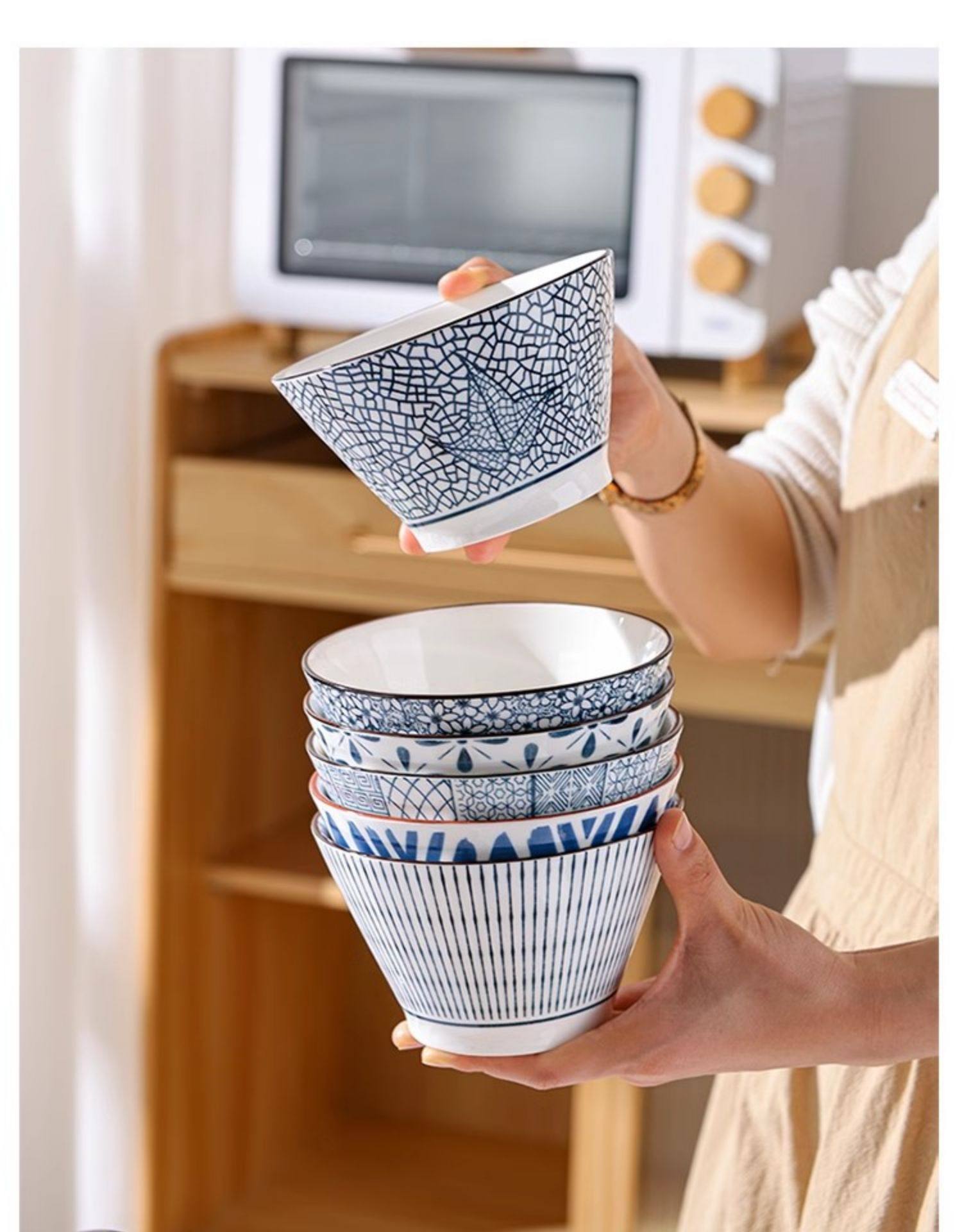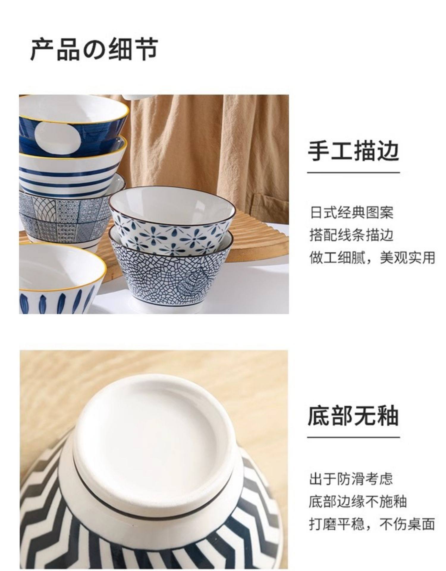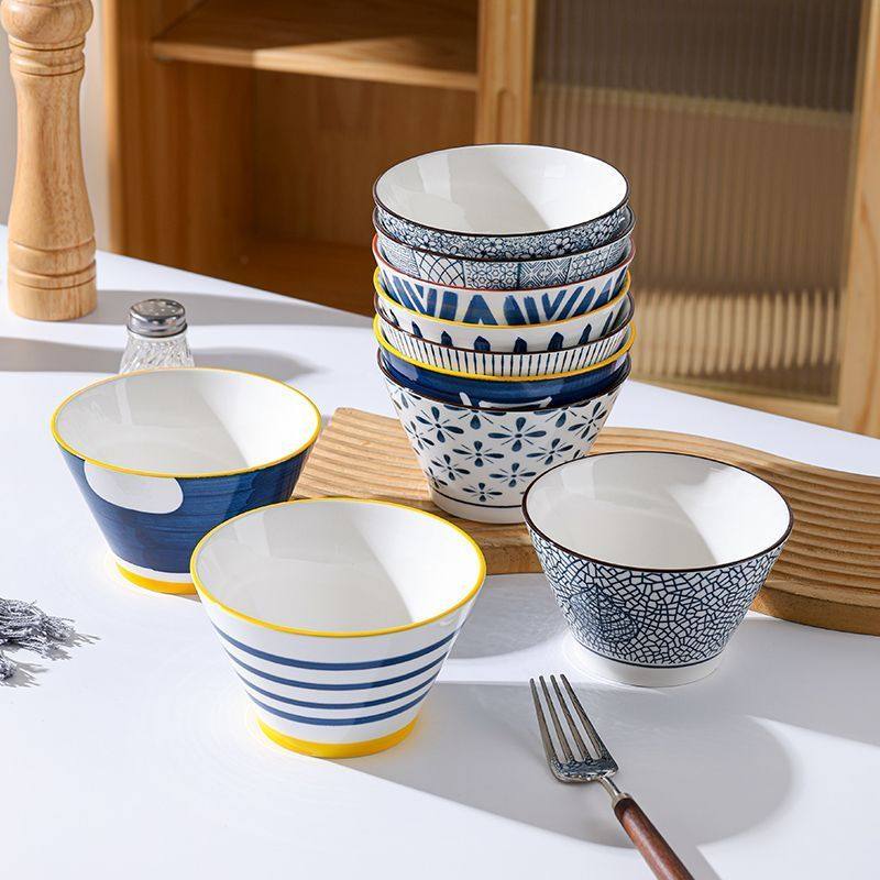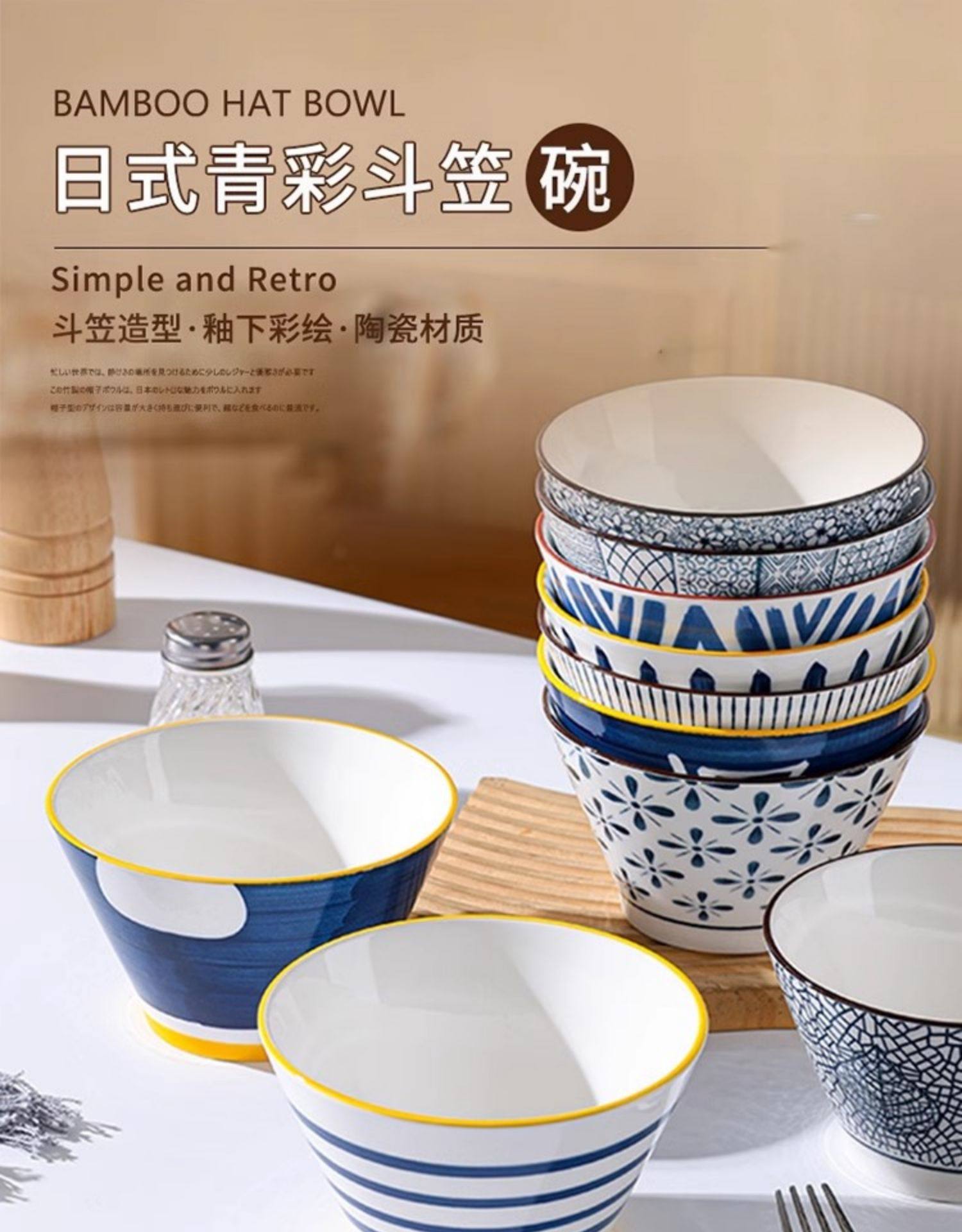 釉下彩5英寸斗笠碗家用日式陶瓷网红精致防烫吃饭碗花色随机 English | 投诉