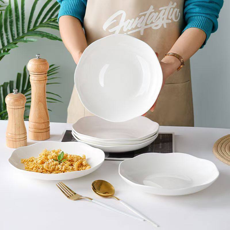 盘子菜盘家用纯白骨瓷高颜值创意花边ins陶瓷凉菜沙拉汤盘深盘 English | 投诉