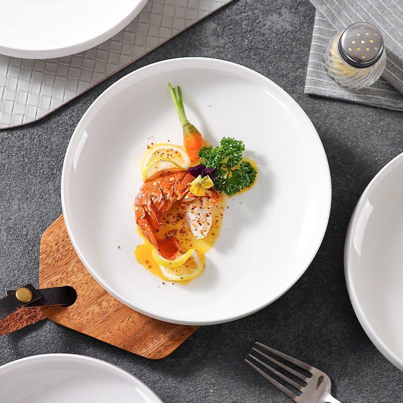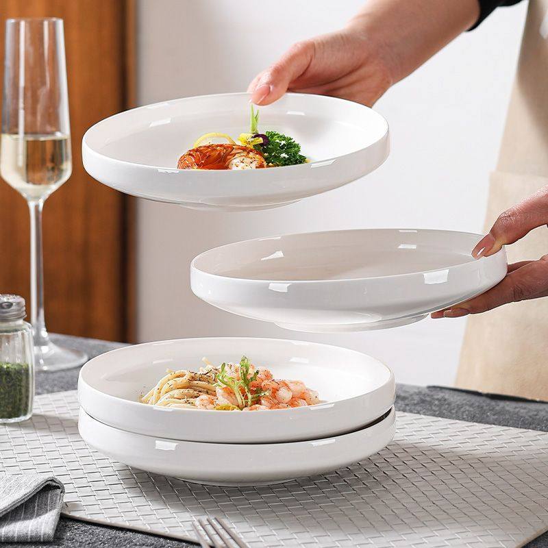 轻奢创意盘子陶瓷纯白菜盘餐具陶瓷窝盘深口加深盘子家用汤盘餐盘 English | 投诉