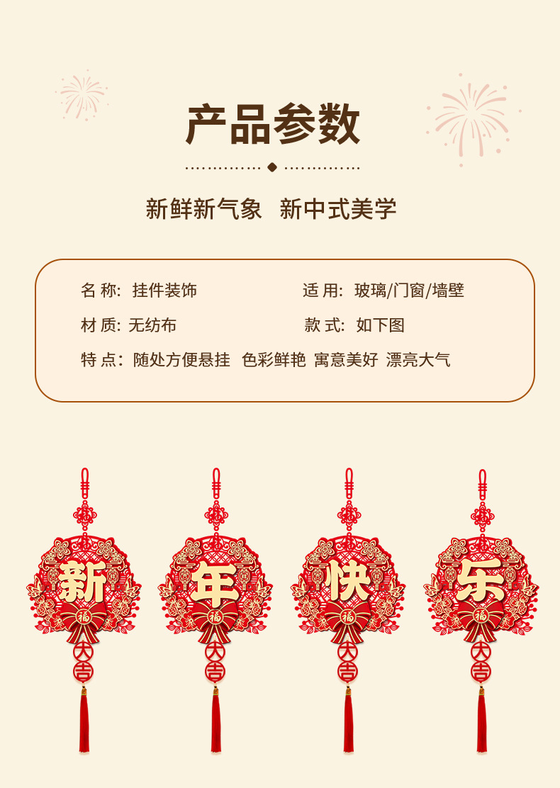 【新年快乐】四字挂件 ¥1225 33528件可售