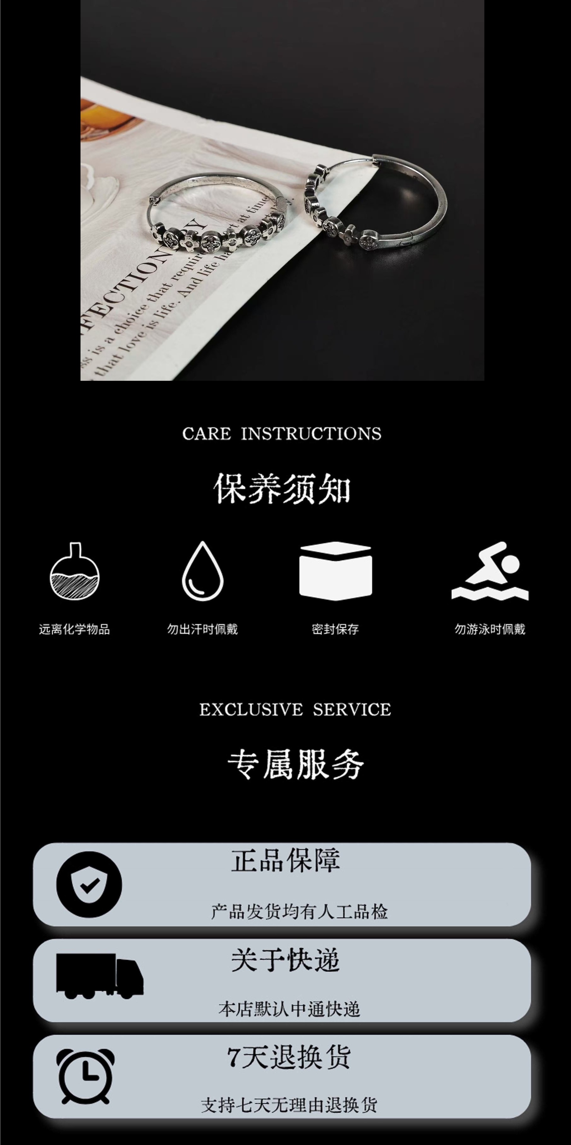• 本店主营个性雷,潮流类,金属简约钛钢类饰品,手链,手镯,饰品套装,吊坠,戒月出新品在500款左右,远销韩国,日本,东南亚,美洲,欧洲等一众时尚大国。现货款式有上万款,可来样定做,7天出款,15天出货。