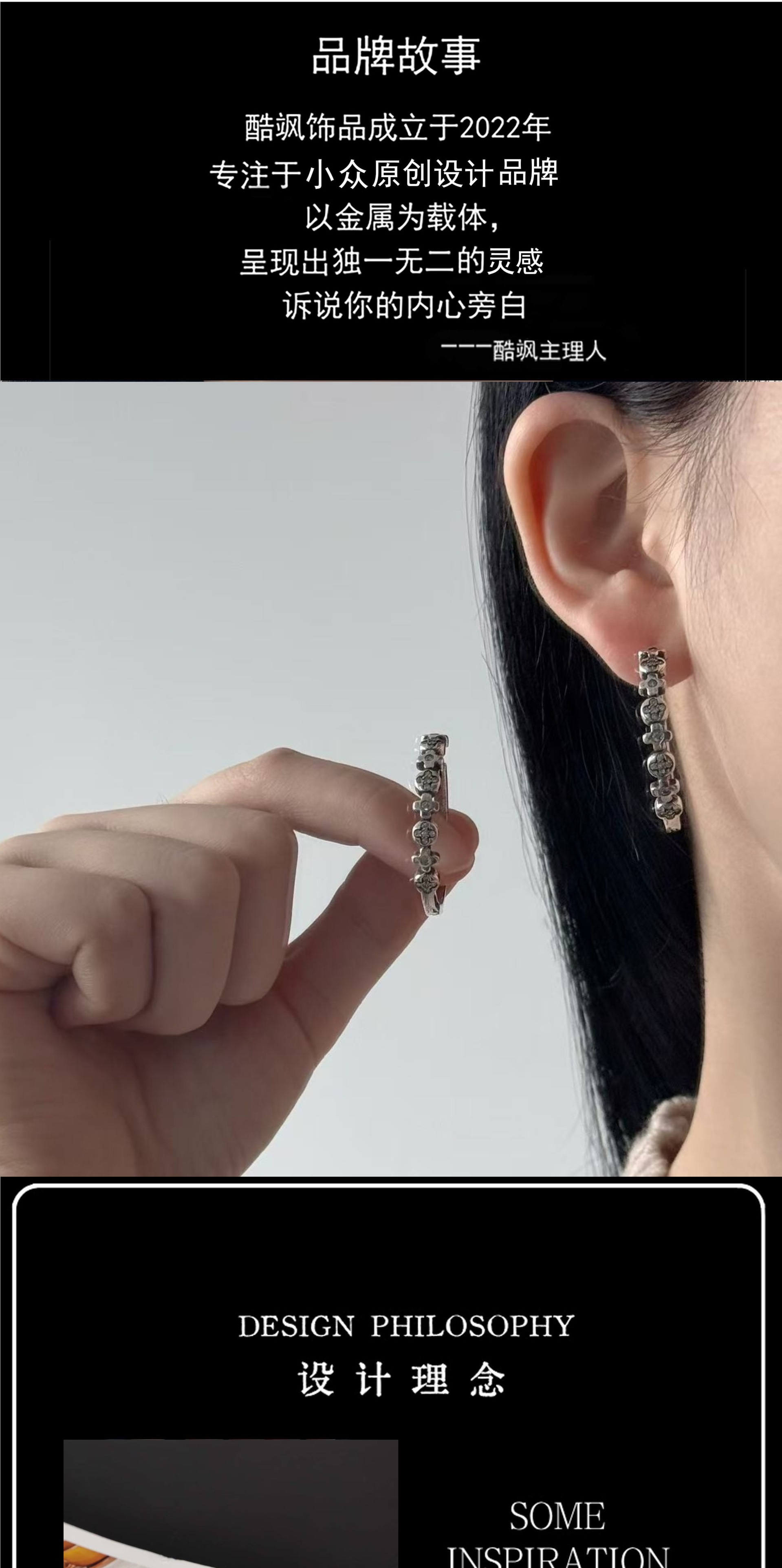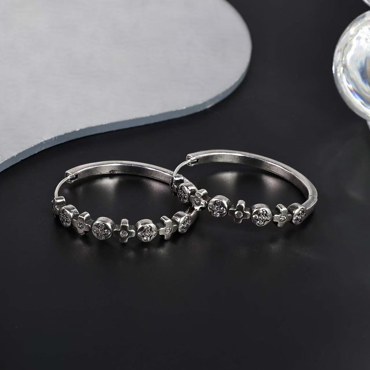 高级感做旧幸运四叶草大圈耳扣百搭气质耳饰小众设计持久保色 English | 投诉