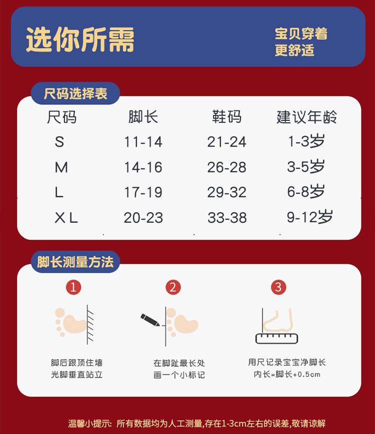 | S码1-3岁【建议鞋码21-24码】 | ¥0 | 585838双可售 |