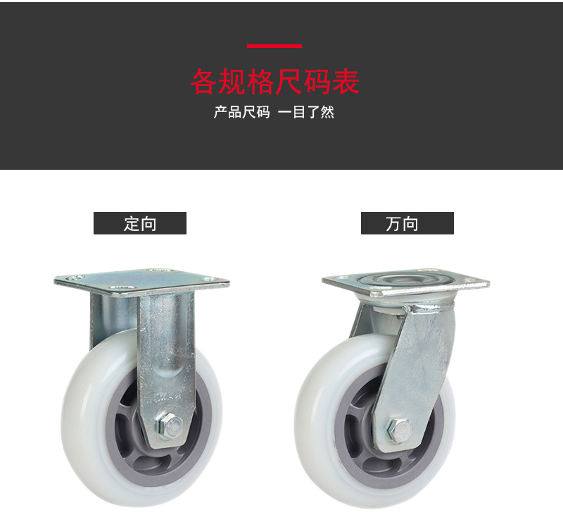 | 4寸单轮*纯白色*尼龙*140*140mm*万向脚轮*52mm*1.8*双620 | ¥3200 | 10000个可售 |