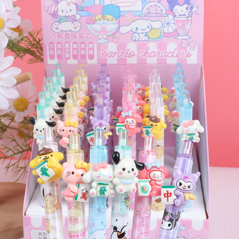 三丽欧卡通硅胶按动笔0.5mm学生书写笔黑色香味中性笔厂家批发