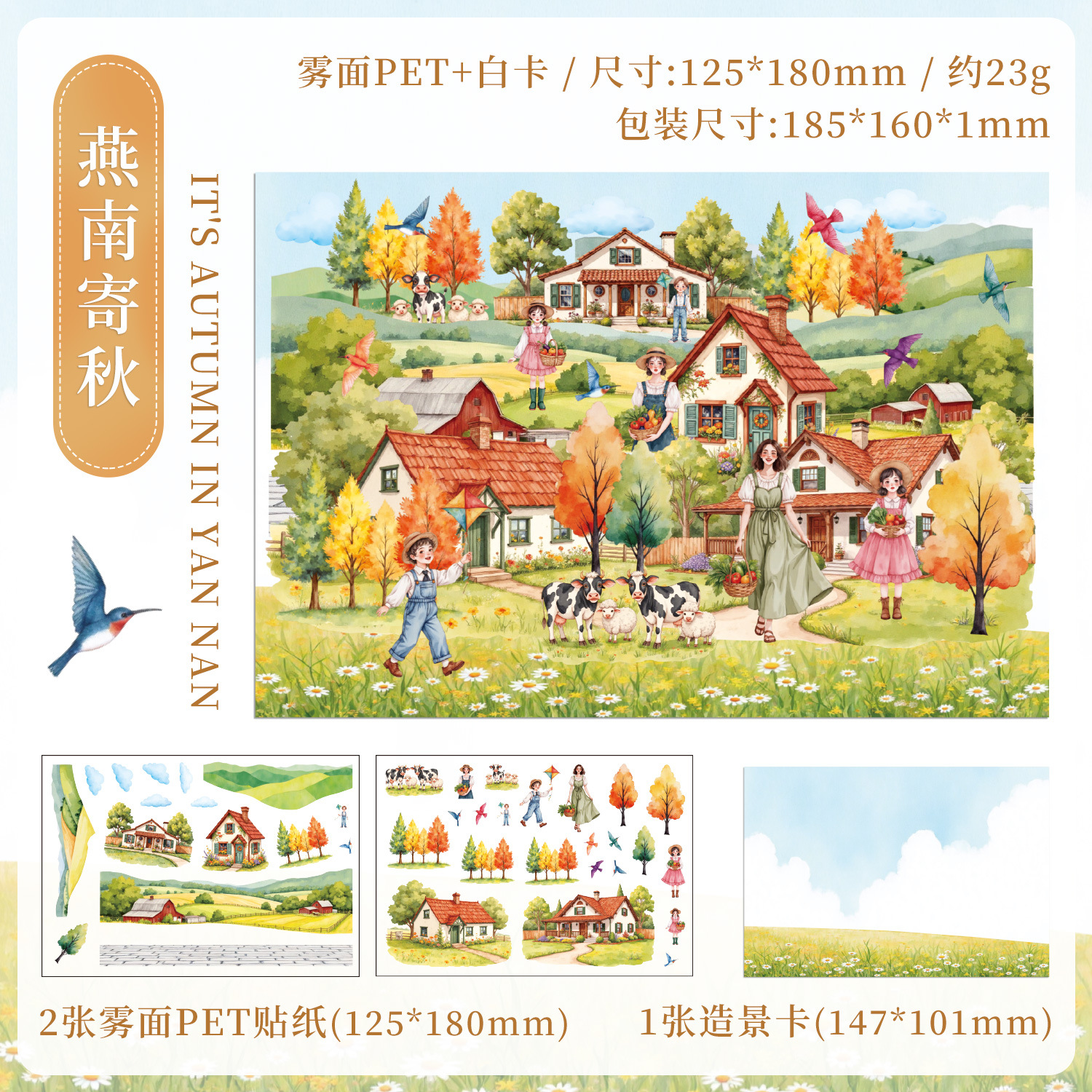 跨境专供温柔南岸雾面造景贴纸儿童微缩立体场景贴纸创意贴画批发