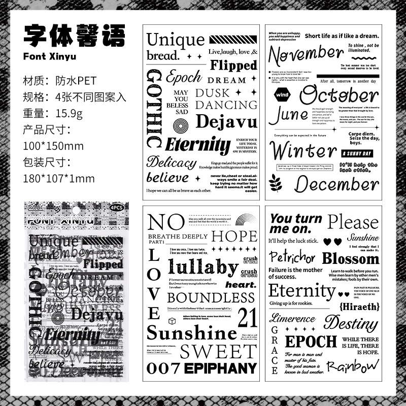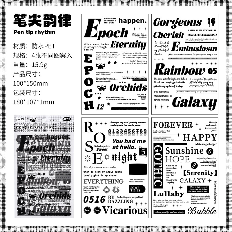 跨境外贸专供新品创意印记字母手帐贴纸 英语手账素材diy贴画批发