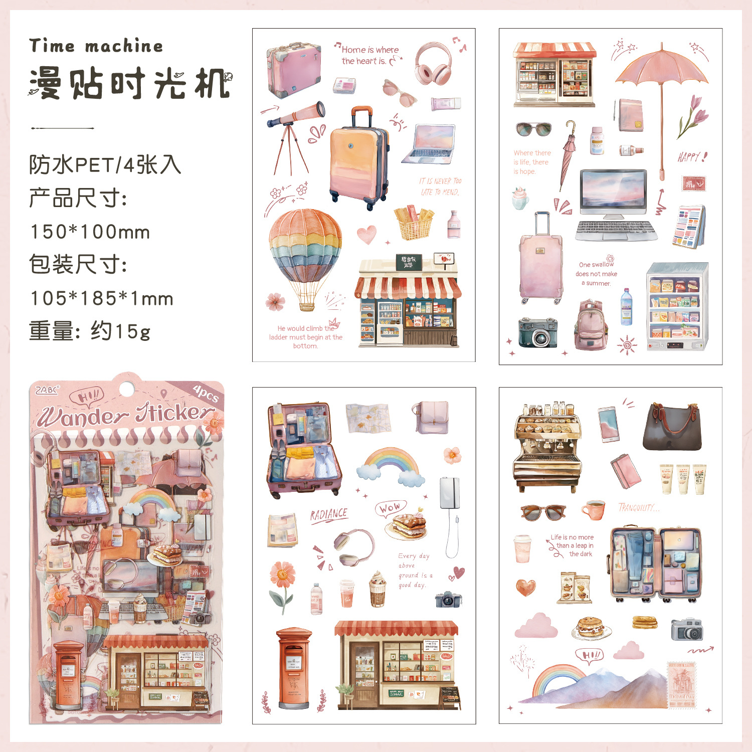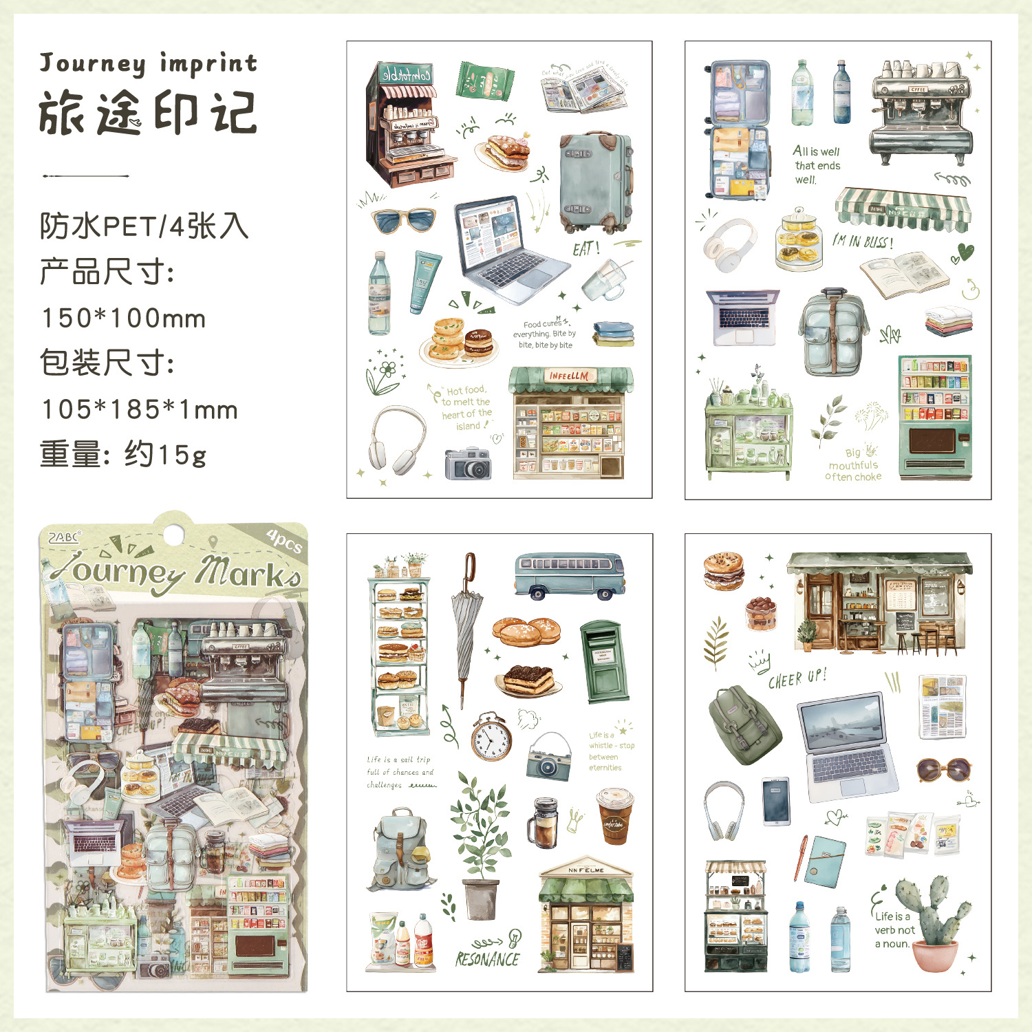 跨境专供旅途小确幸韩系pet创意贴纸旅途手账素材diy模切贴纸批发 投诉
