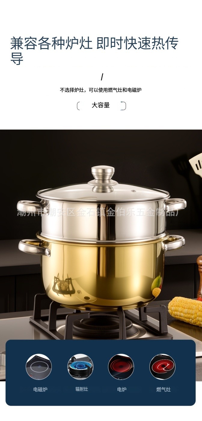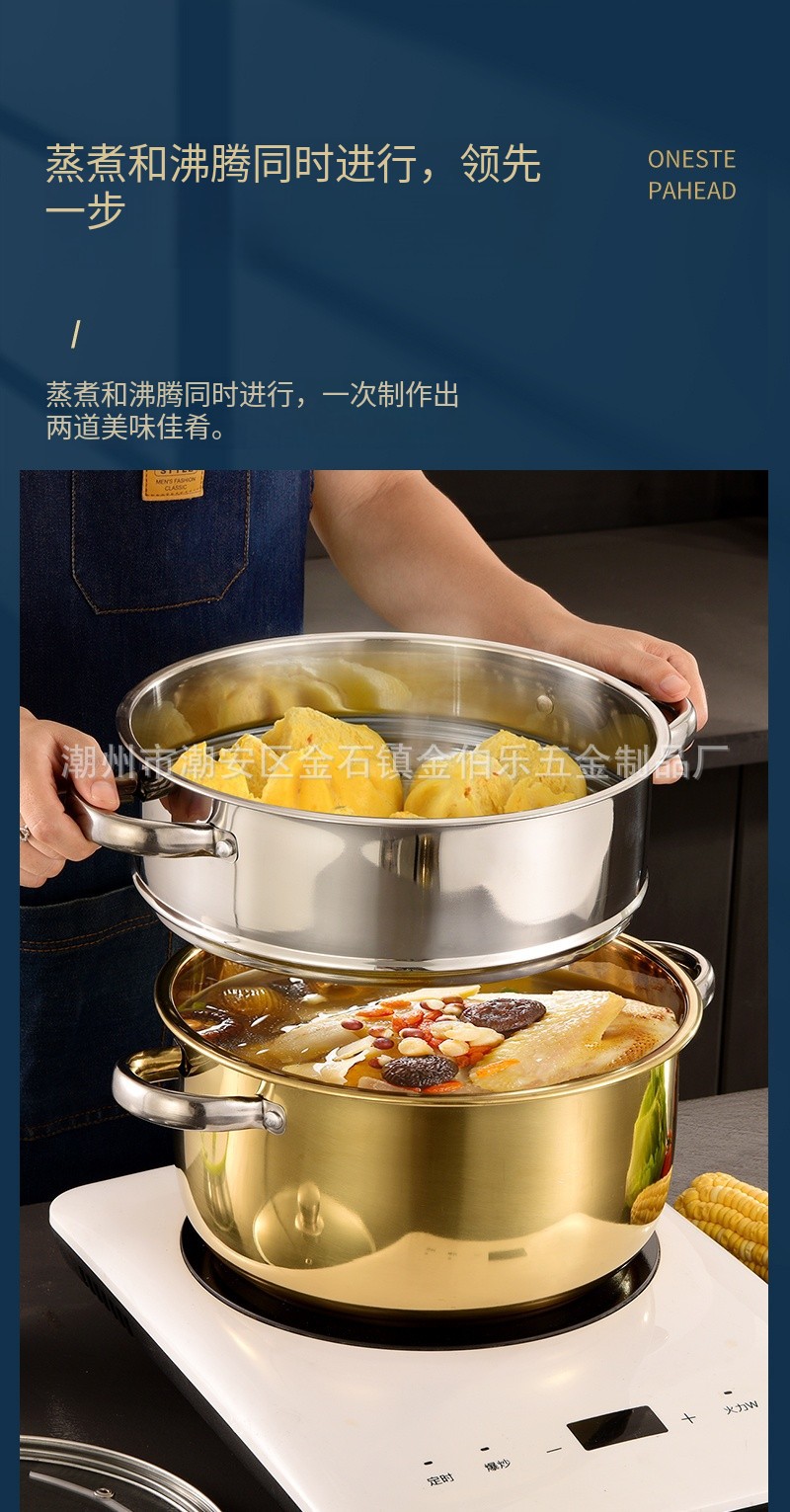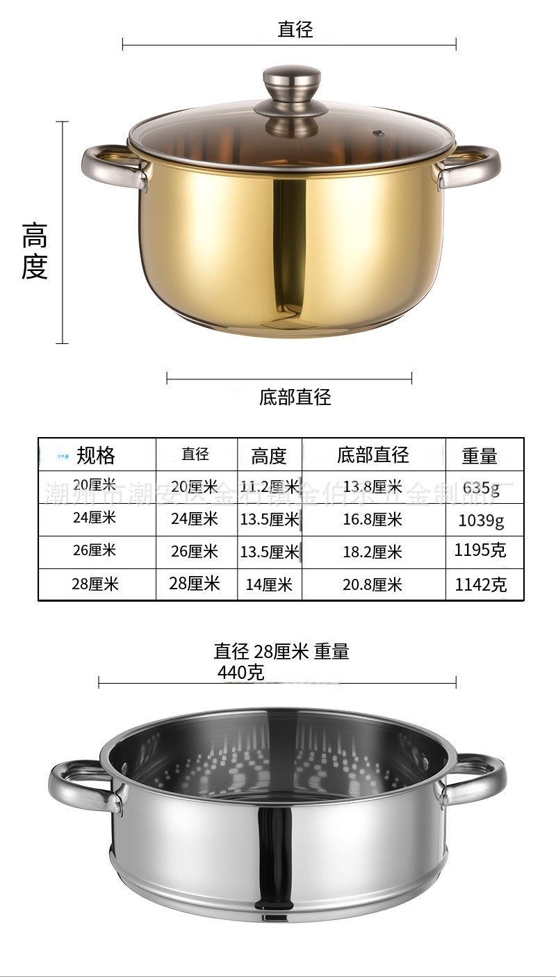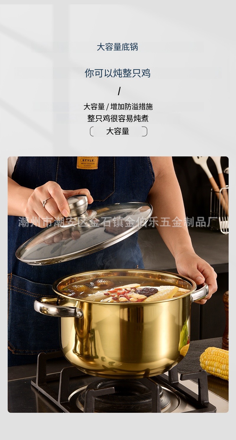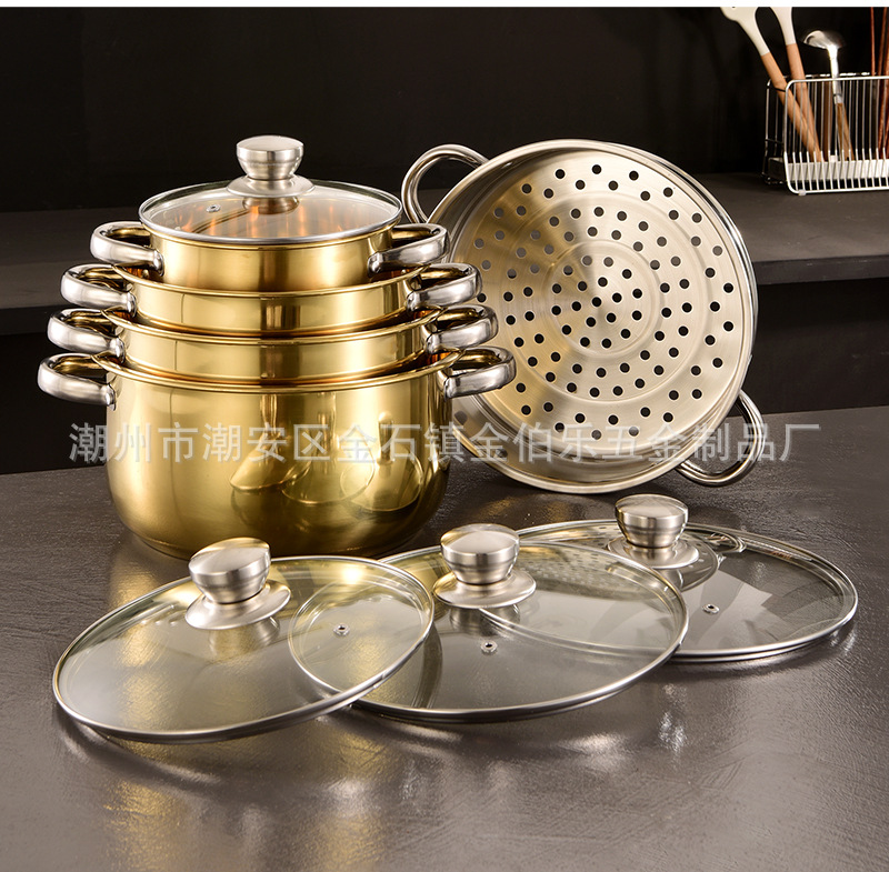 金色套装锅家用不锈钢蒸汤锅煮锅加厚电磁炉双耳汤锅跨境锅具套装 English | 投诉