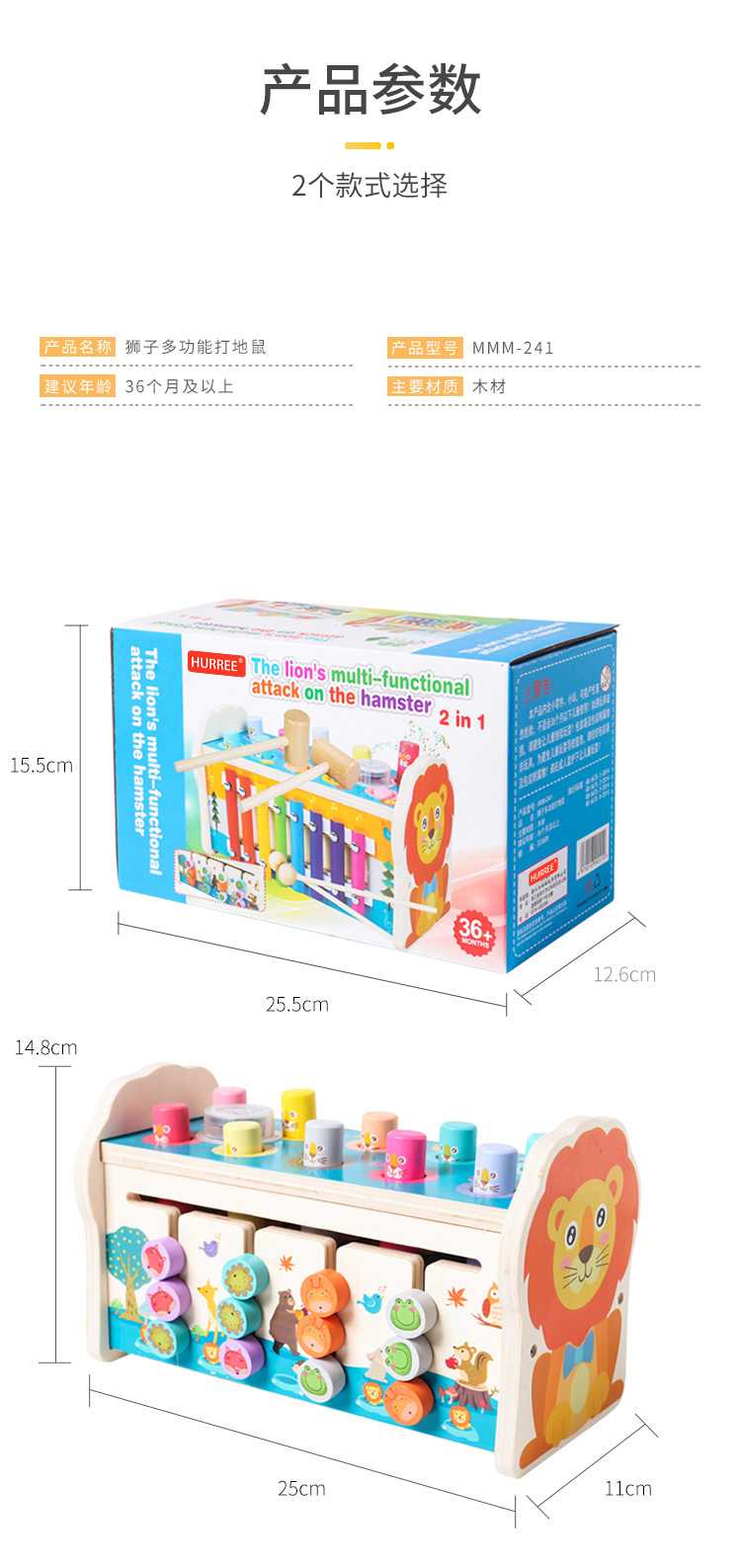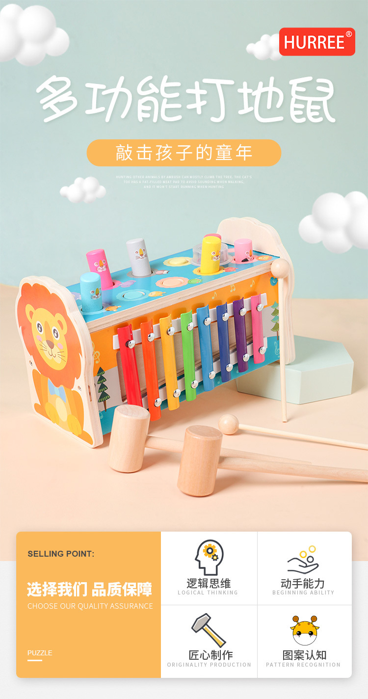 产品名称 多功能狮子打地鼠+音乐盒 产品材质 木制