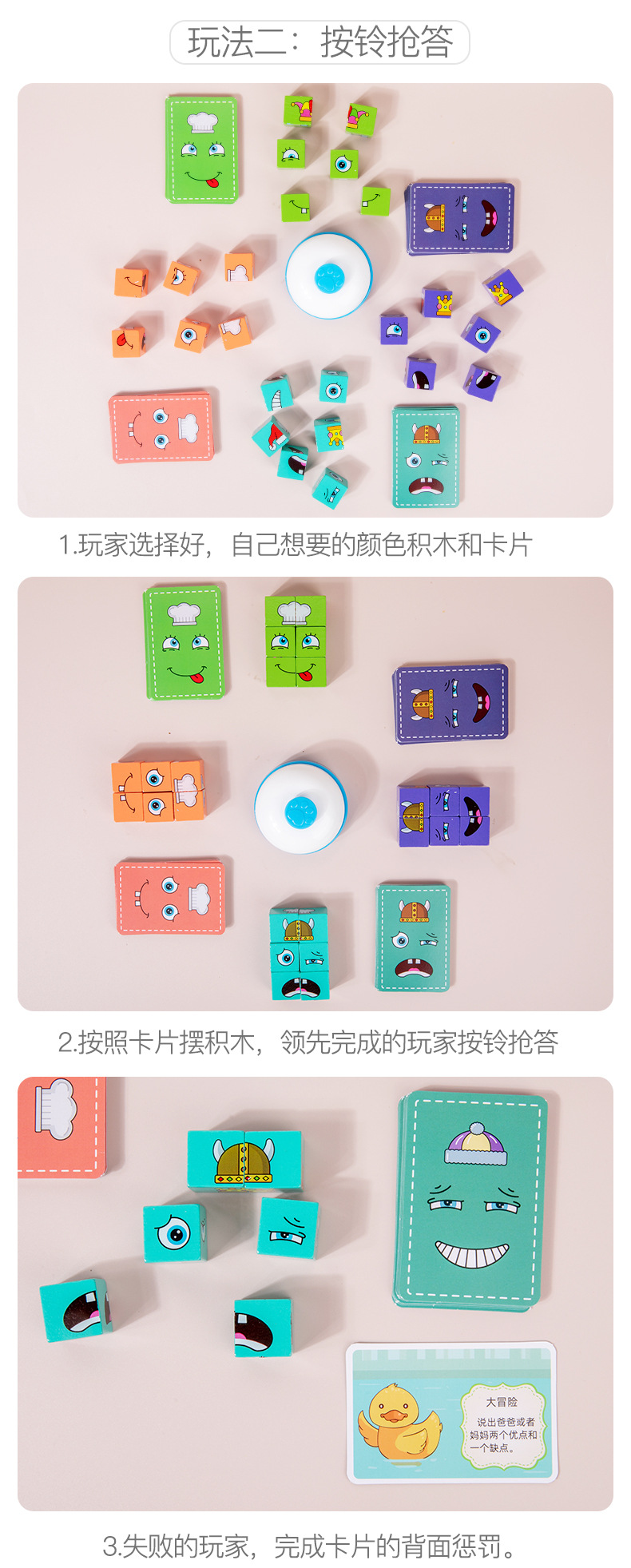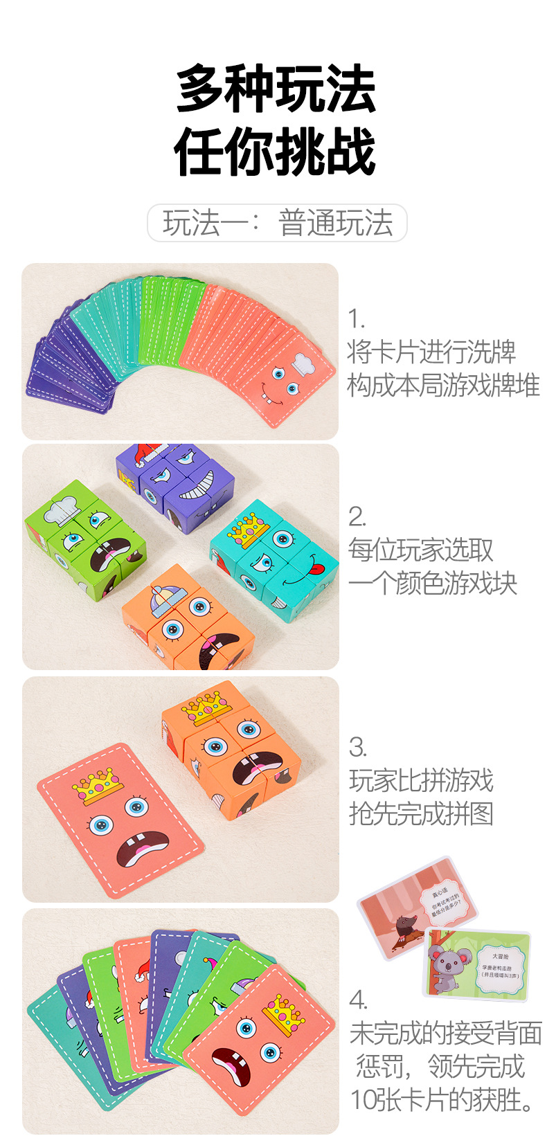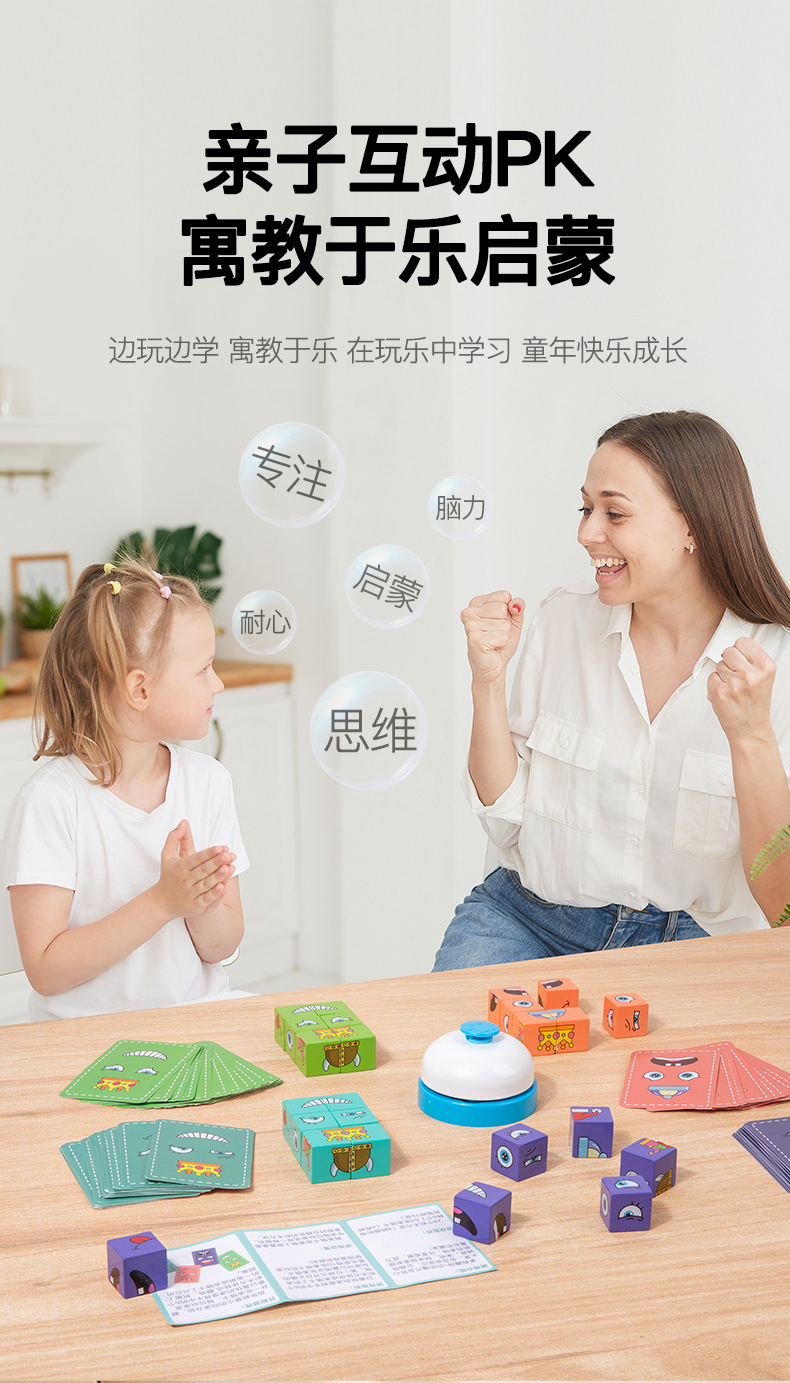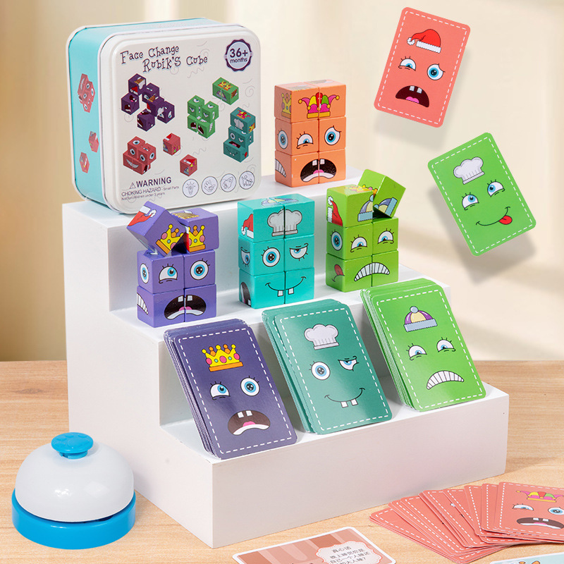 英文铁盒包装 积木24颗、卡片64张 产品名称 新款铁盒变脸魔方