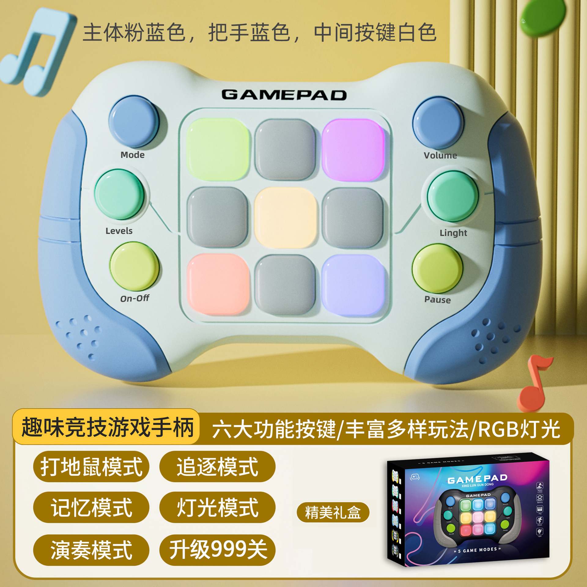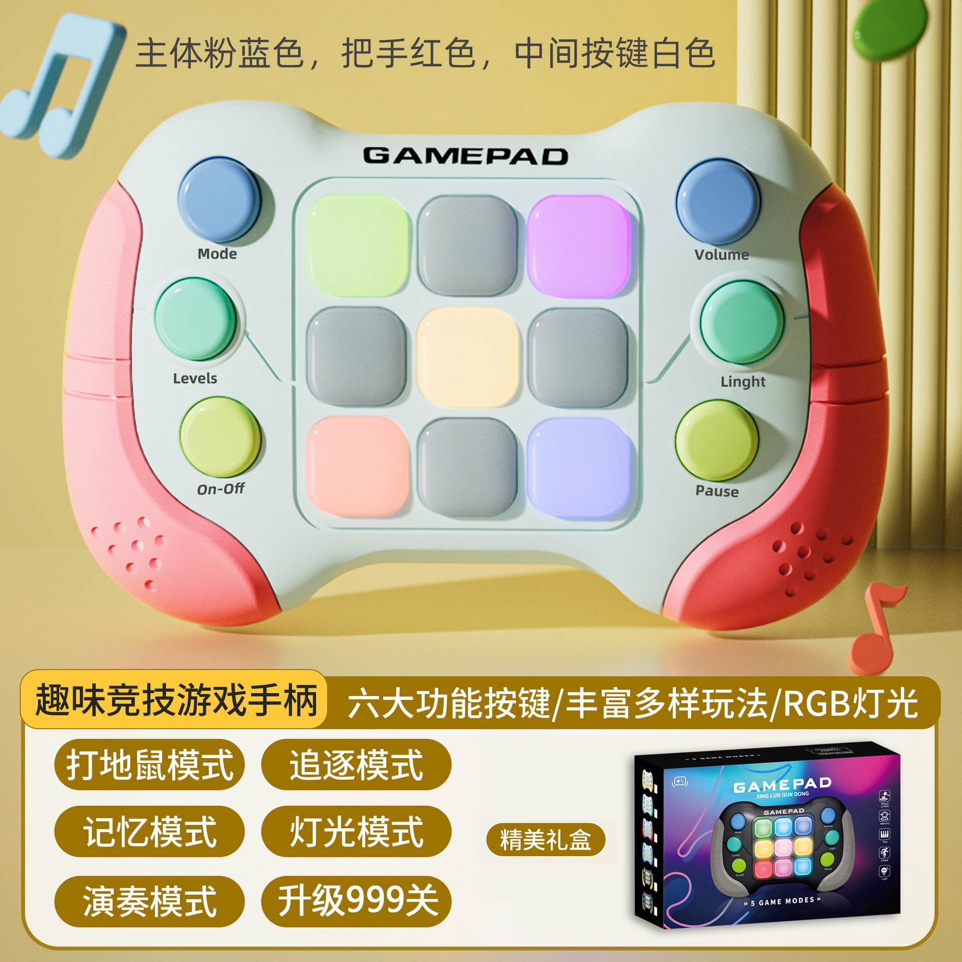 8793功能:999个关卡,五种模式:打地鼠模式/记忆模式/追逐模式/演奏模式/灯光模式