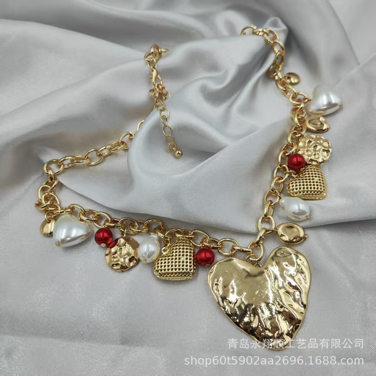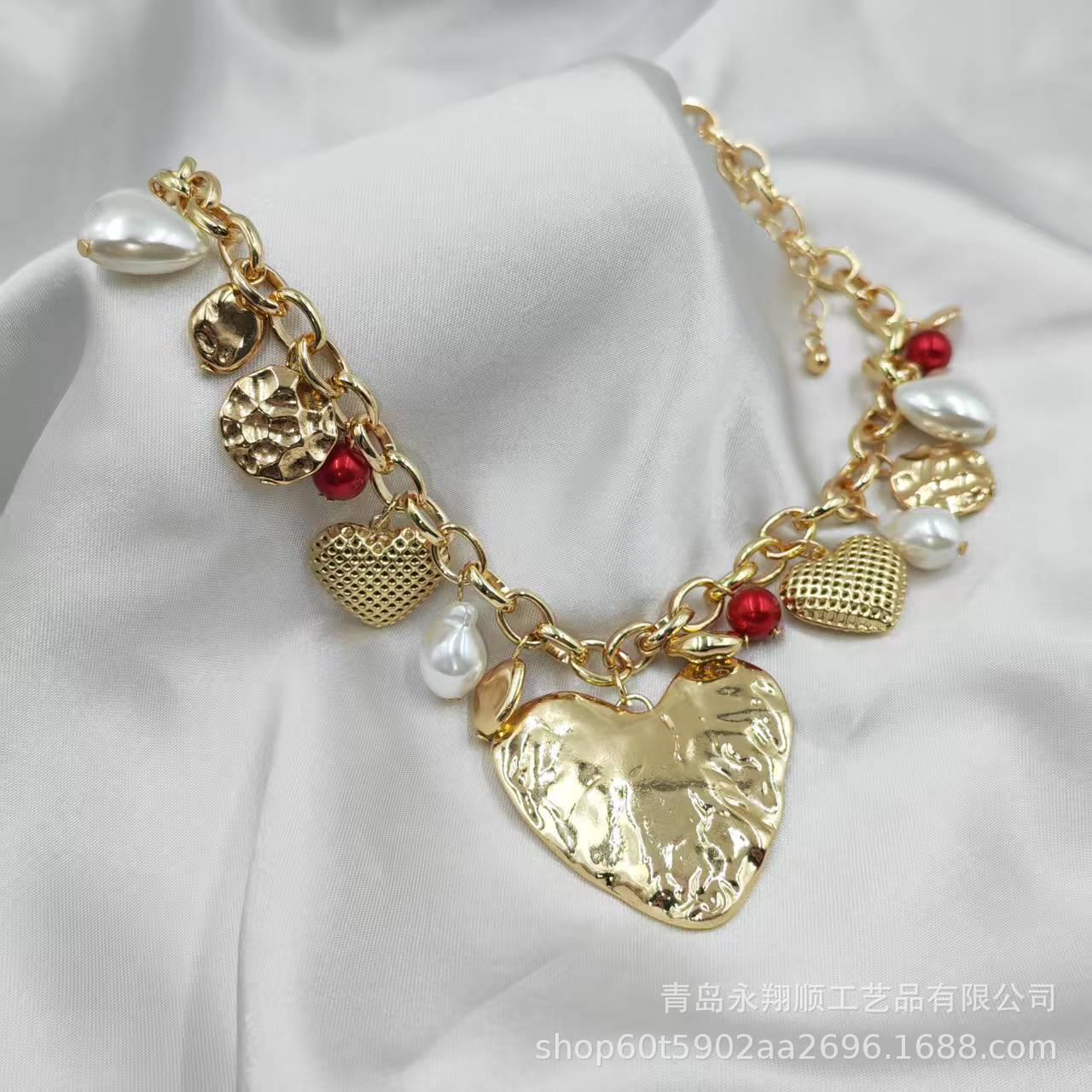 材质: 铁 处理工艺: 电镀 链子样式: o字链 坠子材质: 锌合金 品牌: 无 流行元素: 褶皱,不规则,网状,爱心/心形 造型: 心形,几何型 产地: 青岛 是否多层: 否 周长: 41cm(含)-50cm(含) 主要下游平台: wish,快手,SHEIN,速卖通,天猫 颜色: 金色 有可授权的自有品牌: 否 是否跨境出口专供货源: 是 上市年份/季节: 2025夏季 风格: 小香风 重量: 54.47g 风格分类: 清新甜美 主要销售地区: 欧洲,南美,东南亚,北美,东北亚,中东 适用人群: 女式