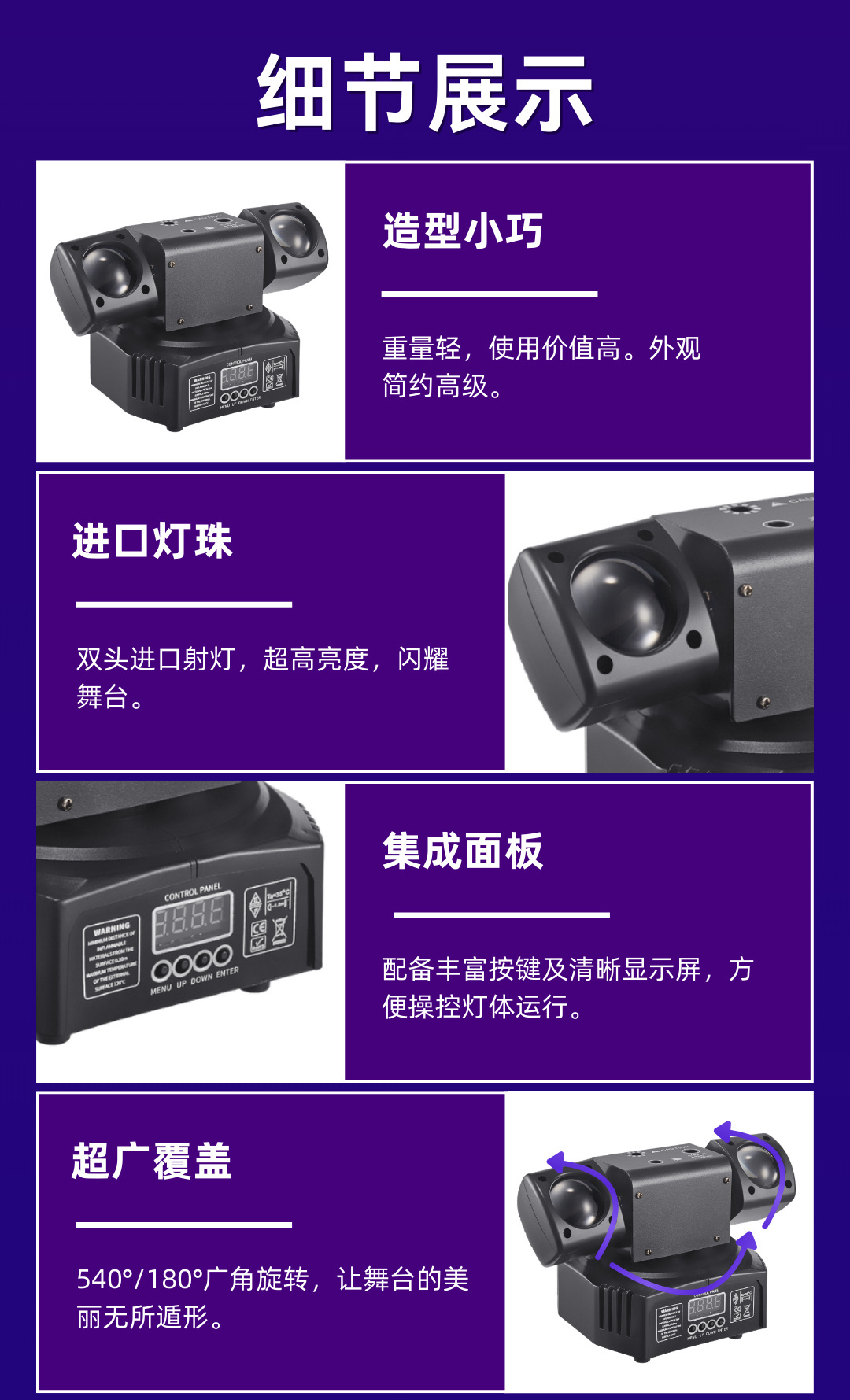工作模式:DMX512,主/从机,自走,声控