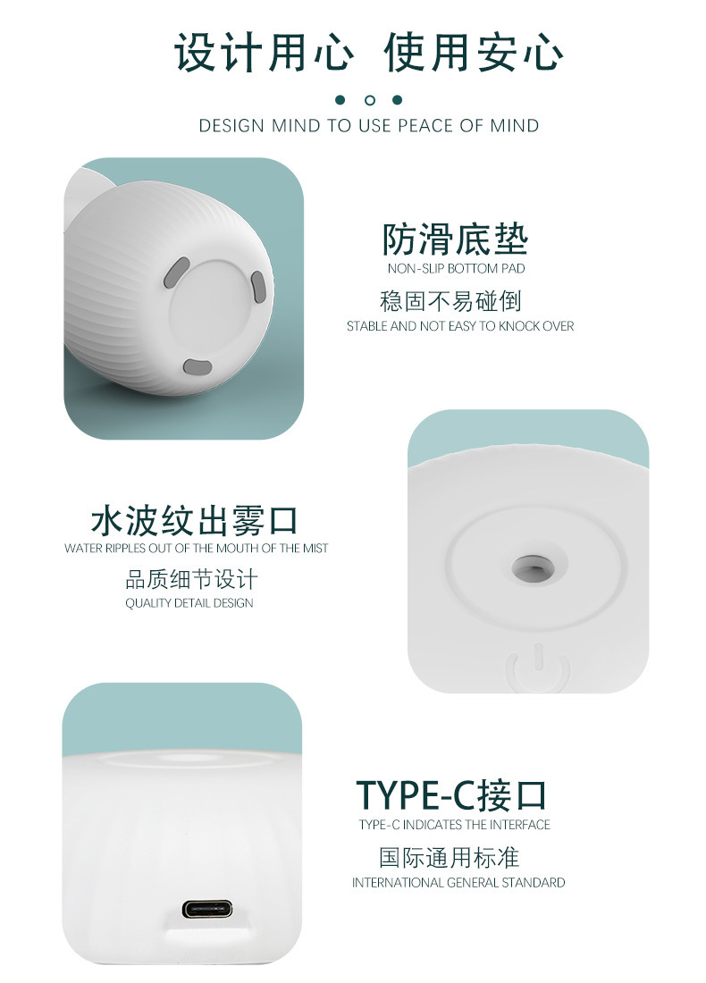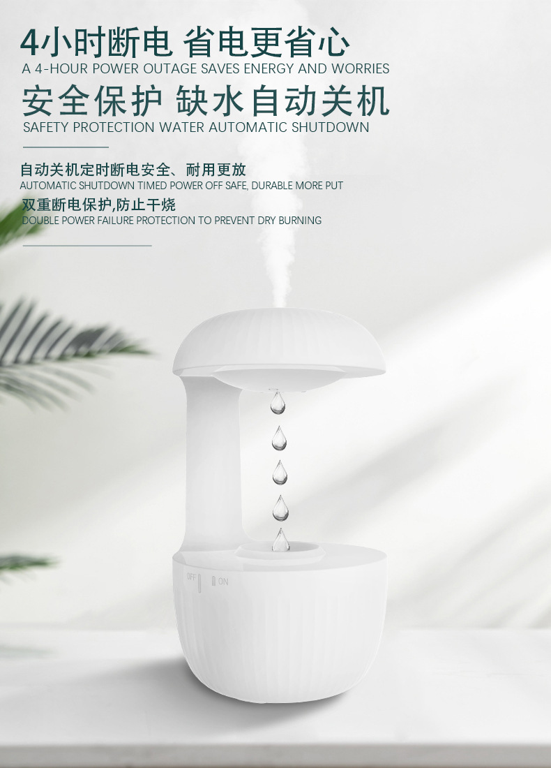 产品特色:专利产品,4H断电保护,水滴倒流,超声波细雾,轻便设计