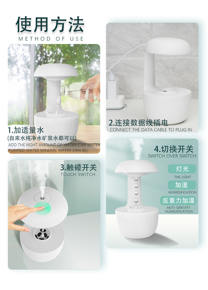 功能描述:智能控制的反重力加湿器