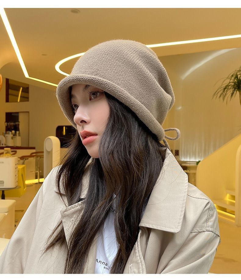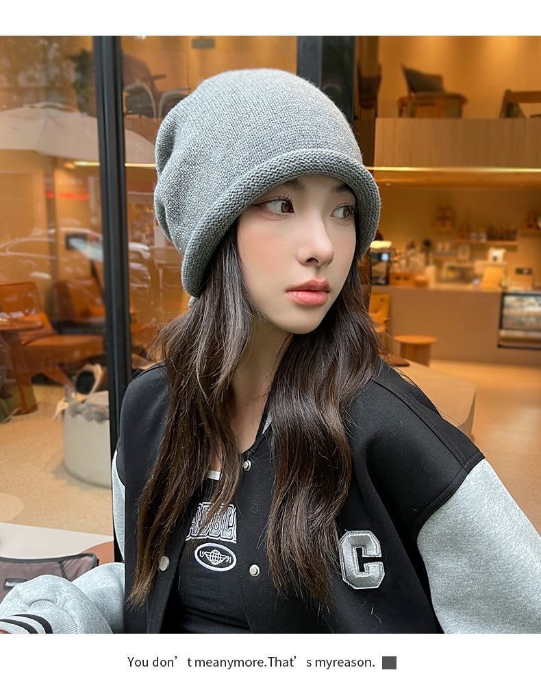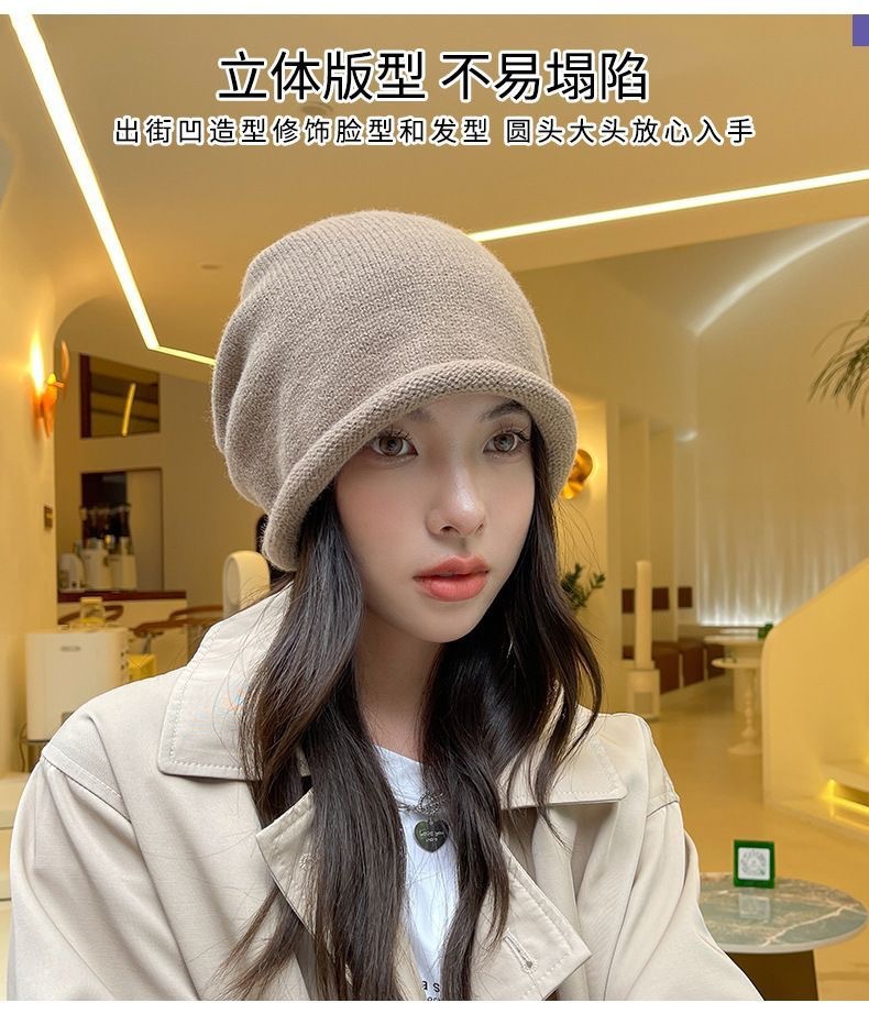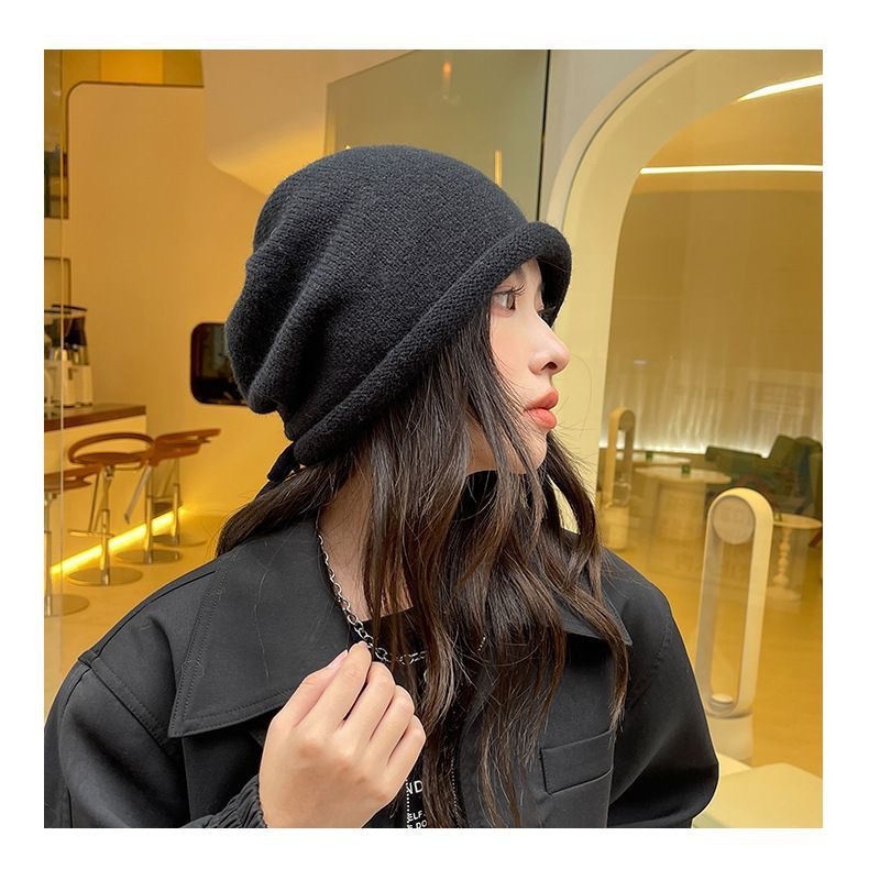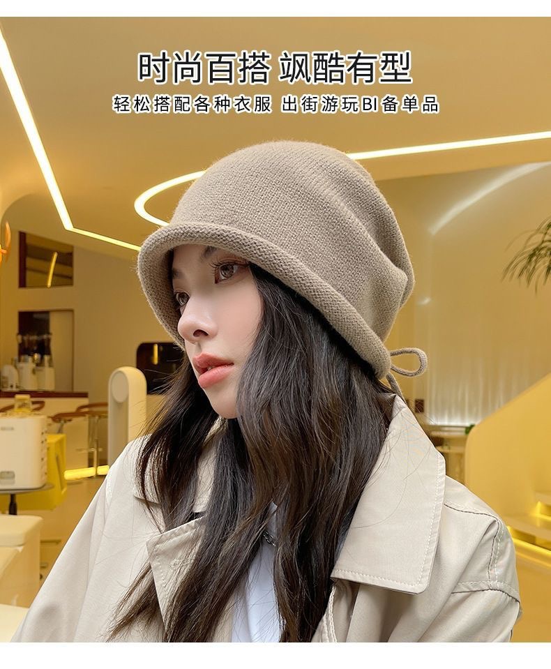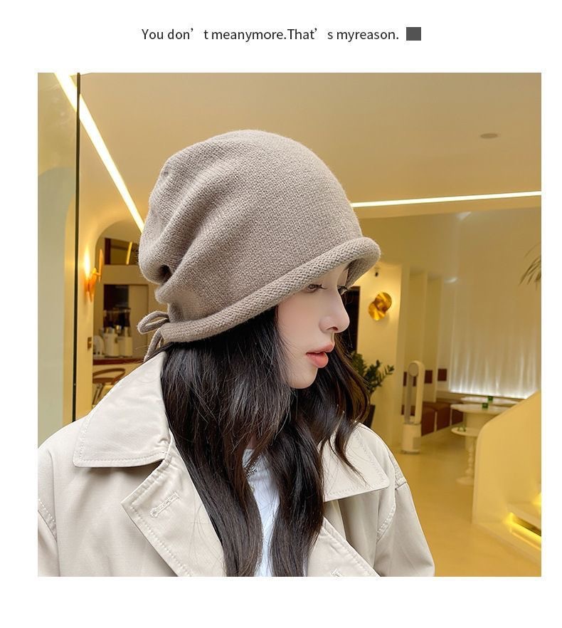 秋冬新款女韩国堆堆大头围护耳抽绳帽子包头帽百搭保暖防寒针织帽