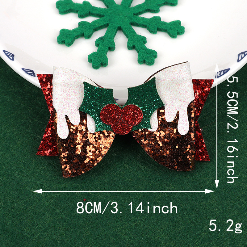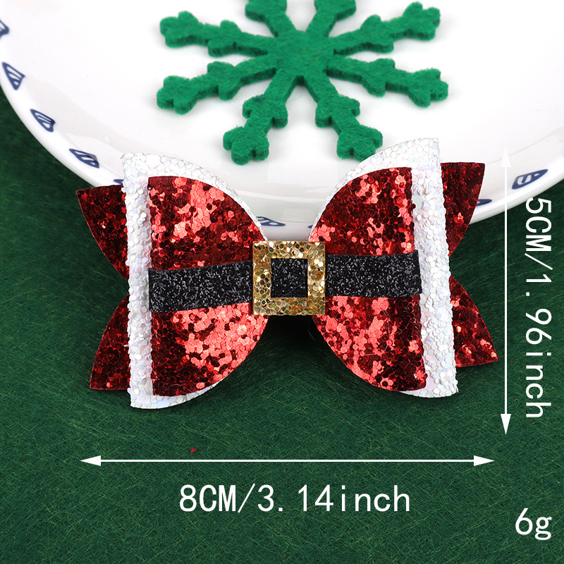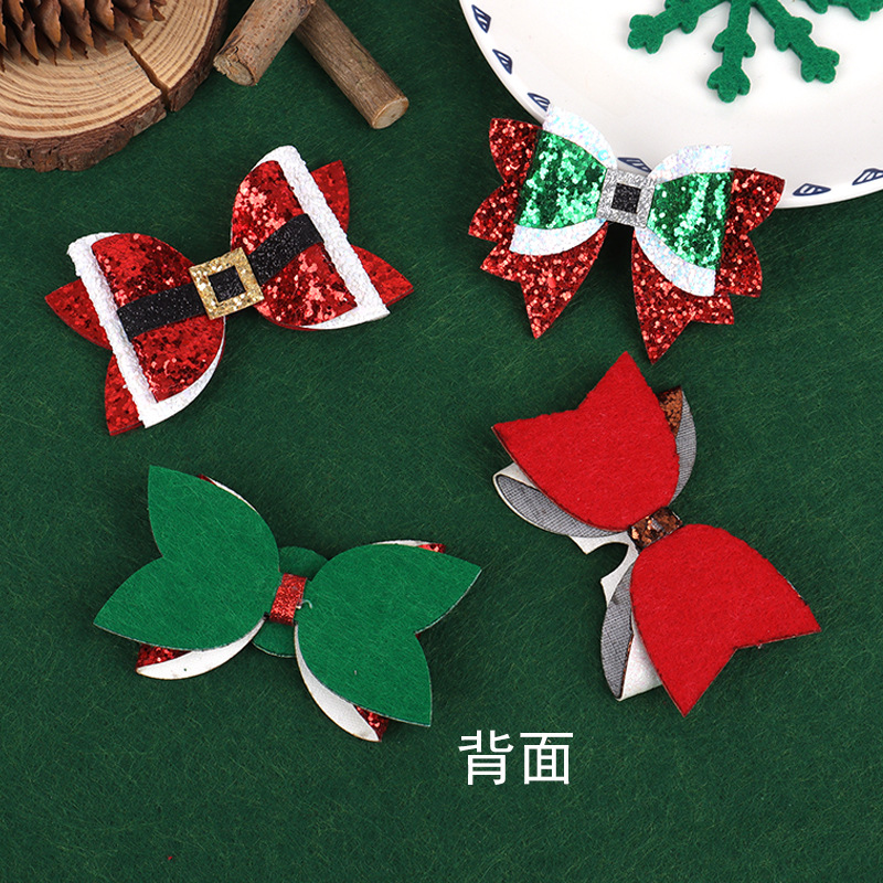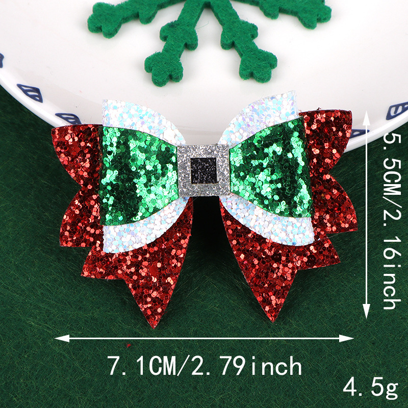 跨境圣诞节卡通闪粉格利特蝴蝶结百搭拼色蝴蝶结装饰发夹头饰配件 投诉