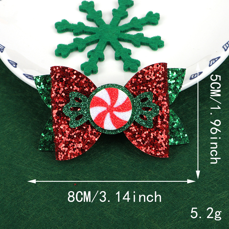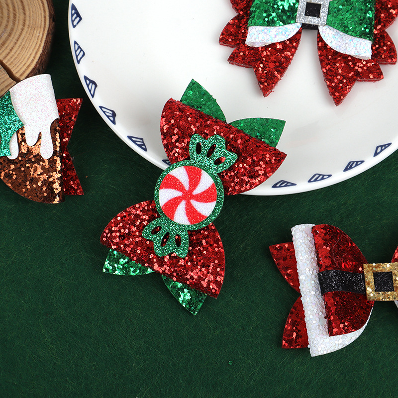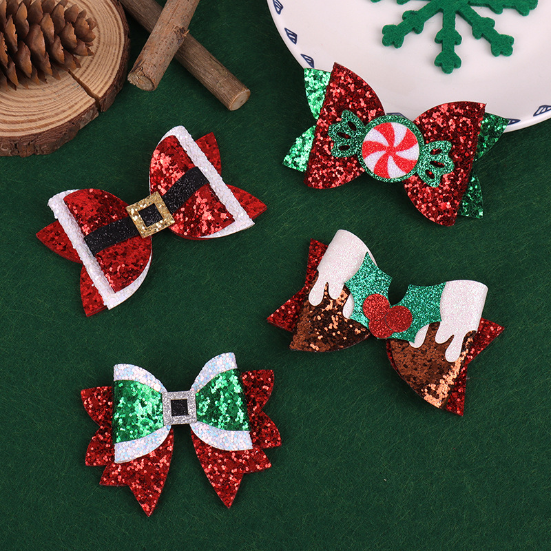 跨境圣诞节卡通闪粉格利特蝴蝶结百搭拼色蝴蝶结装饰发夹头饰配件