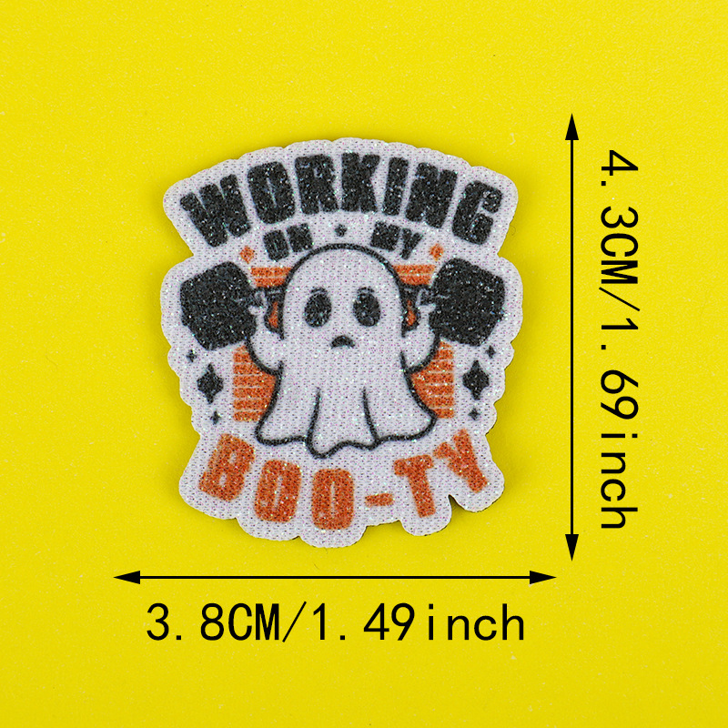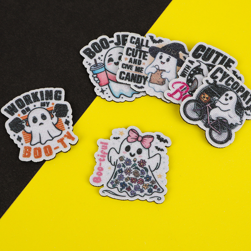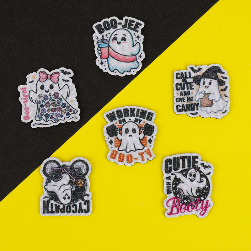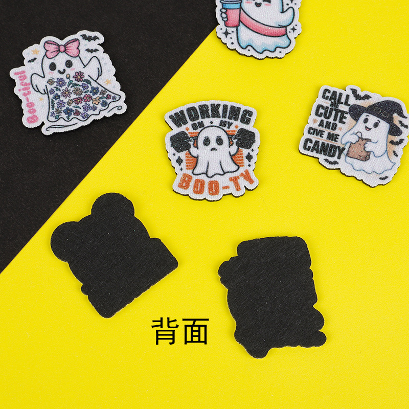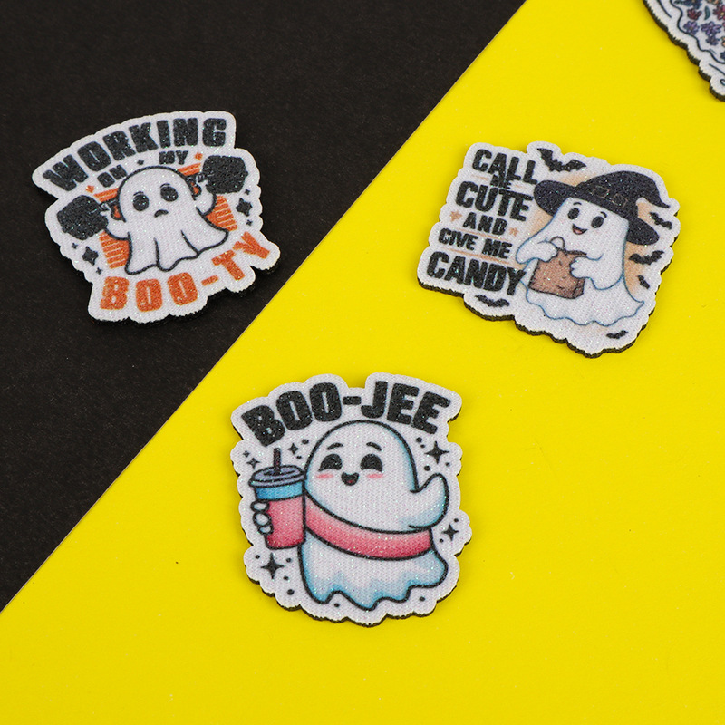 跨境热销圣诞节卡通印刷幽灵配件 diy金粉发饰品徽章衣帽装饰材料